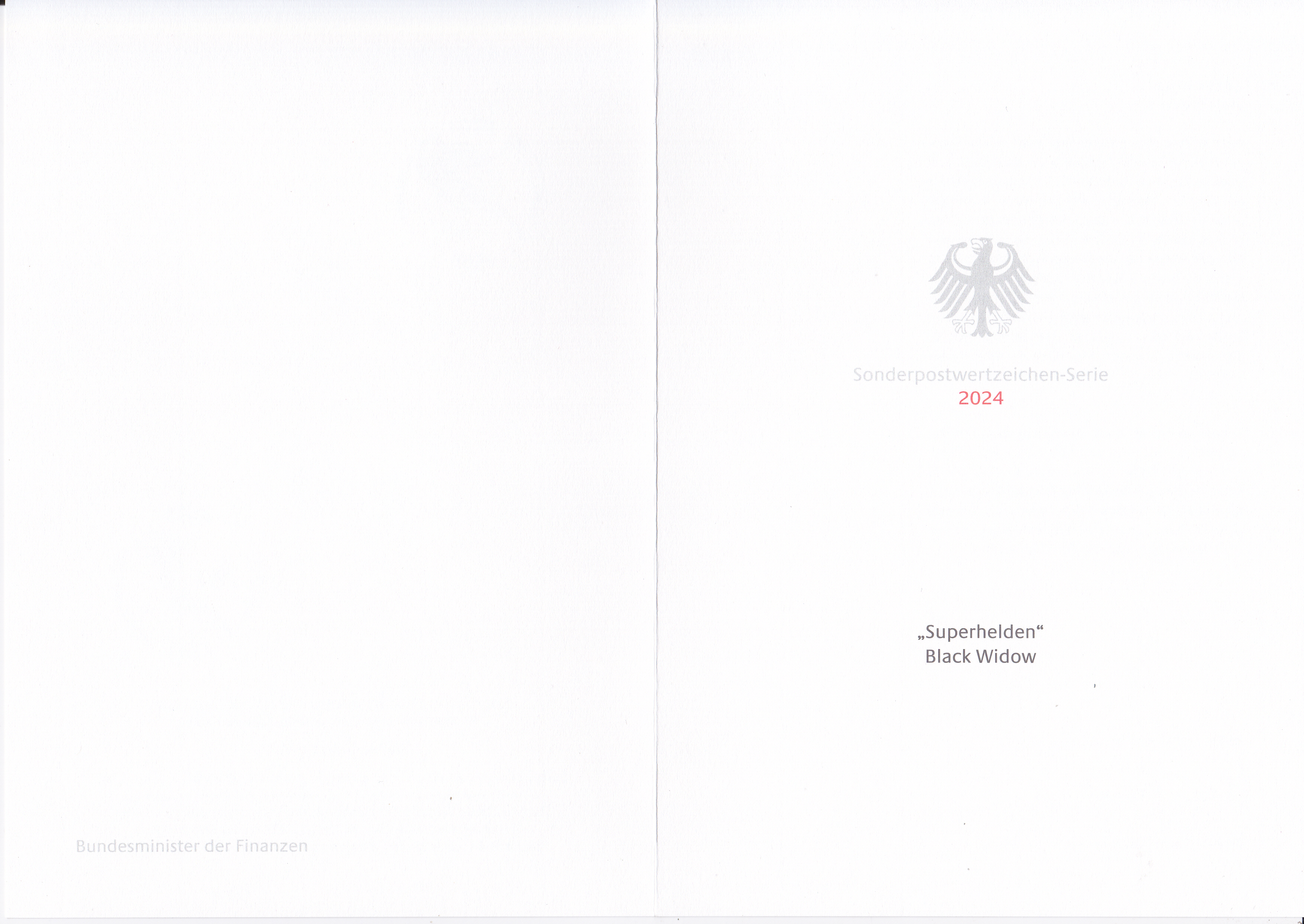Ministerkarte des Bundesministers für Finanzen mit zwei Marken mit dem Motiv "Black Widow" (MiNr 3856) aus der Serie "Superhelden" und den beiden Ersttagsonderstempel Bonn und Berlin.