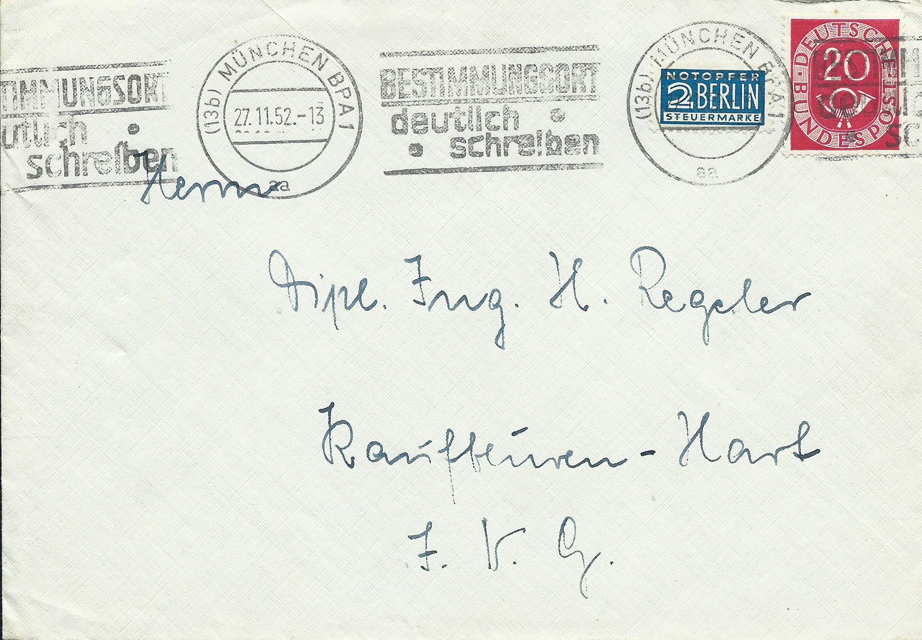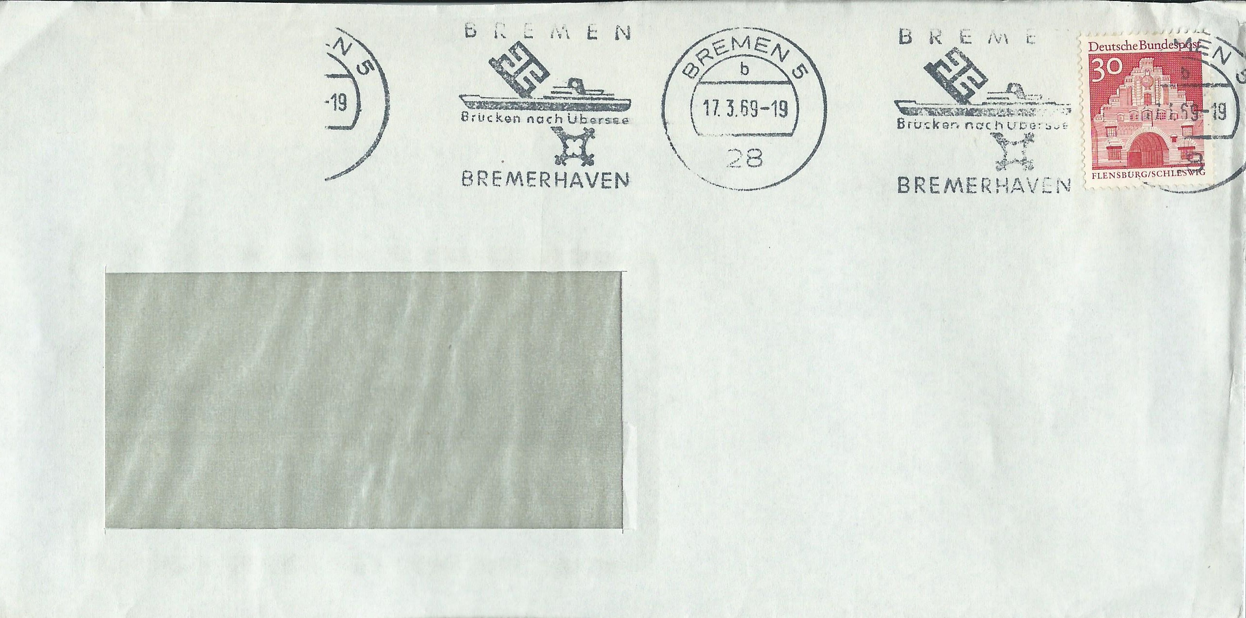 Bandstempel vom 21.1.1965b aus MÖNCHENGLADBACH mit Werbeeinsatz zum Thema "Textil-Bekleidungs- und Maschinen- Industrie":