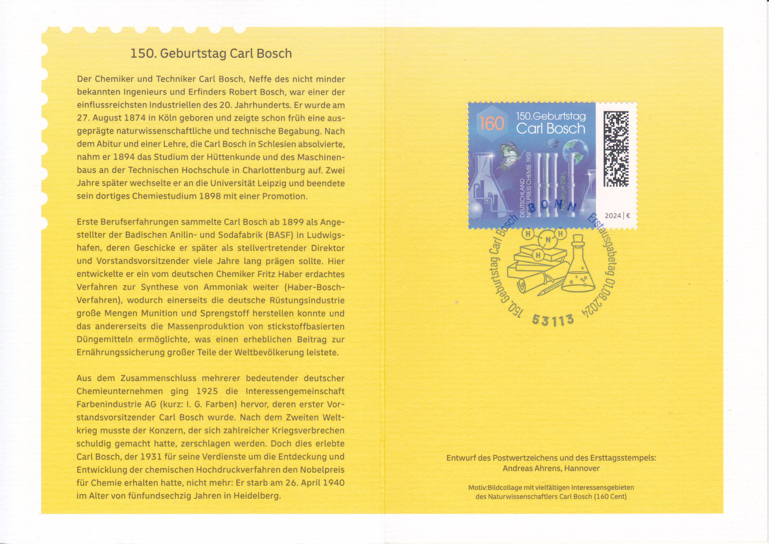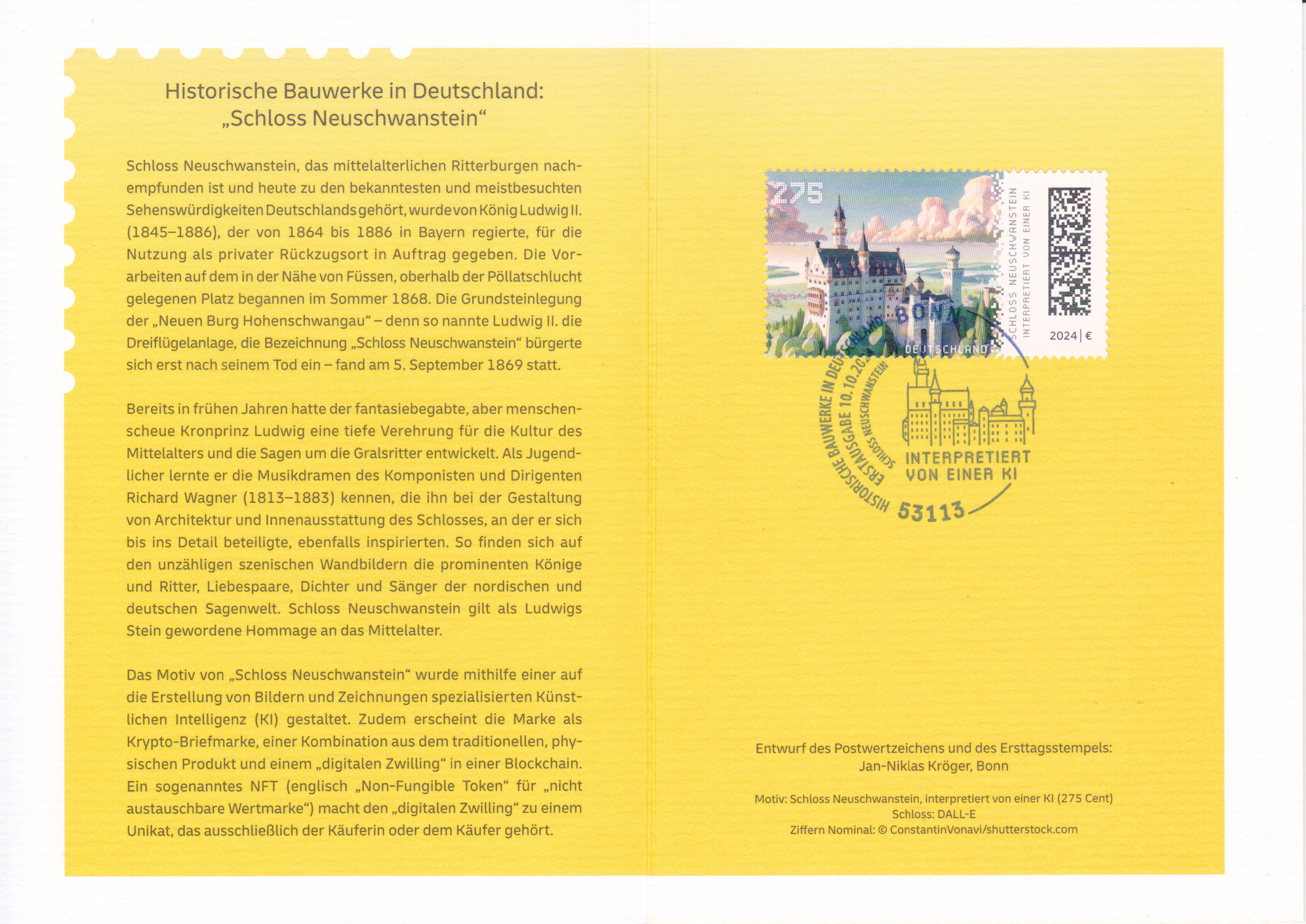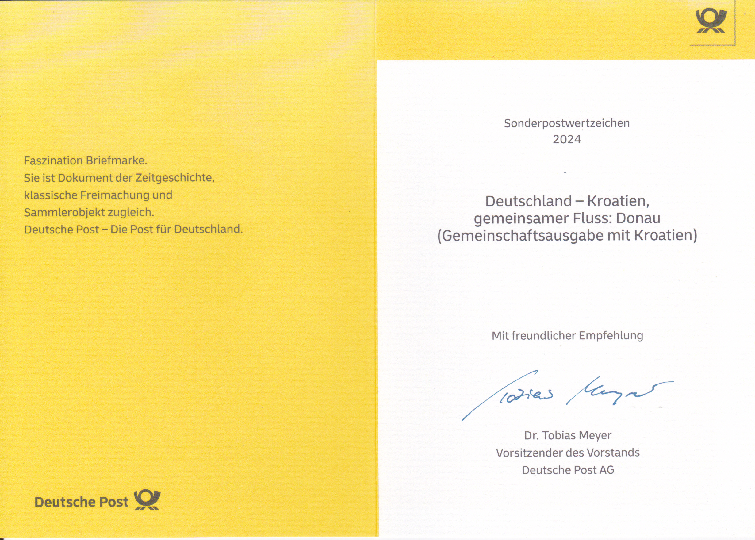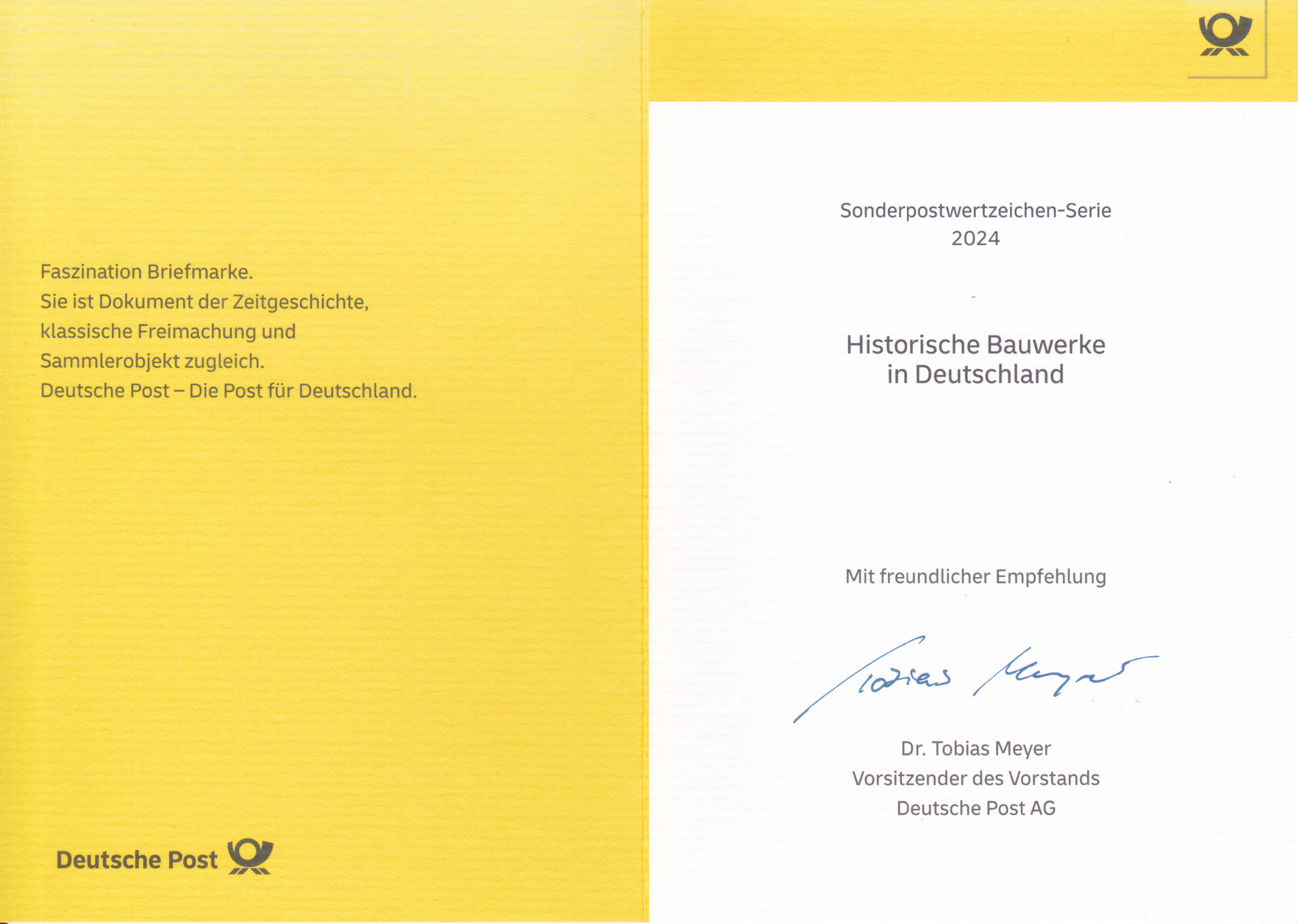 Klappkarte des Vorstandsvorsitzenden der Deutschen Post AG mit der Marke (MiNr 3864) mit der Wandmalerei "Heimat" von Andreas von Chrzanowski (geb. 1979; alias "Case Maclaim", deutscher Graffiti-Künstler) aus der Serie "Street Art" und dem Ersttagsonderstempel Bonn.