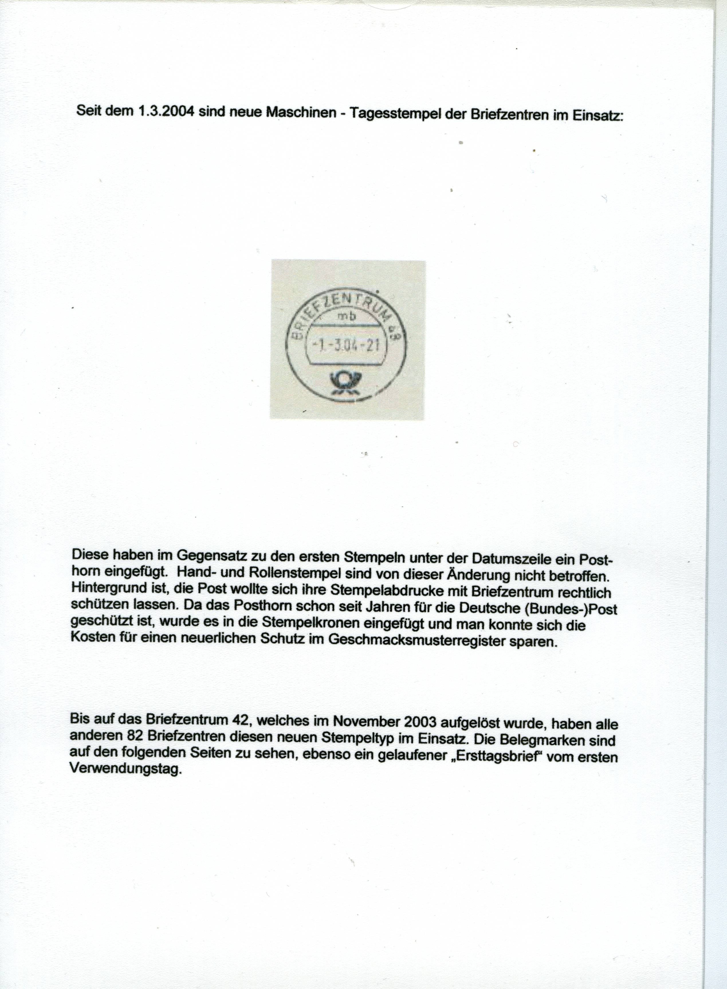 Inhalt der Sammlung sind die gängigen Maschinenstempel und vereinzelt auch mal ein Handstempel. Die neueren Teststempel (Tintenstrahldruck) und jetzt gängigen Grossbriefentwertungen sind hier noch nicht berücksichtigt, dafür fehlte mir bislang etwas die Zeit. Im folgenden zeige ich nun die Scans der Übersichtssammlung, wie sie auch schon auf dem hiesigen Tauschtag der jungen Briefmarkenfreunde einmal ausgestellt wurde. Bitte habt Verständnis, dass ich nicht die ganzen Texte nochmals abtippen möchte, es ist alles lesenswerte in den Bildern enthalten. Und gerade für junge Sammler ist es vielleicht ein Anreiz, auch eine gleichartige Sammlung aufzustellen, Material sollte noch genügend vorhanden sein