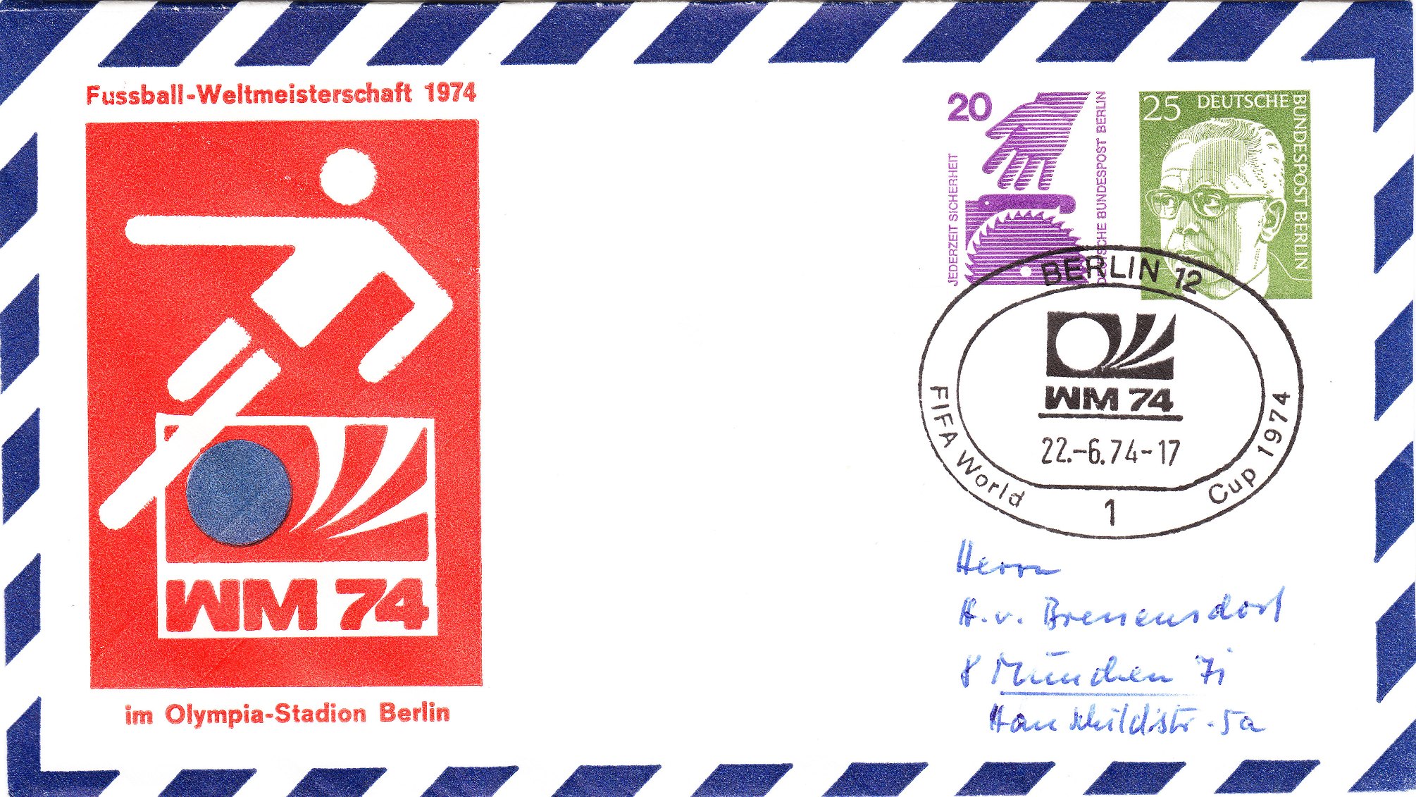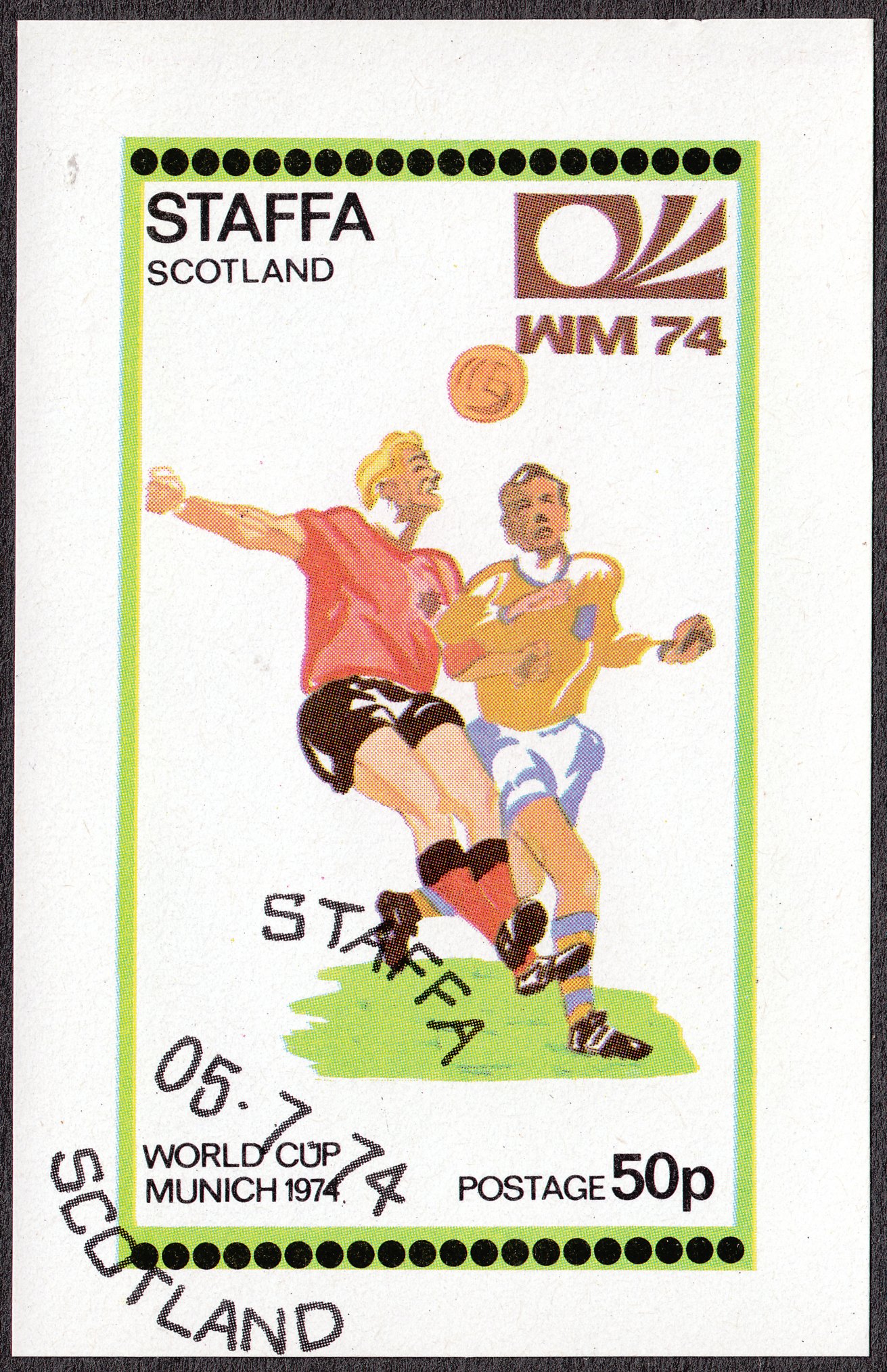 Links unten ist vermerkt "WORLD CUP MUNICH 1974" und das Stempeldatum ist der 05.07.1974. An diesem Tag fand kein Spiel der WM 1974 statt!