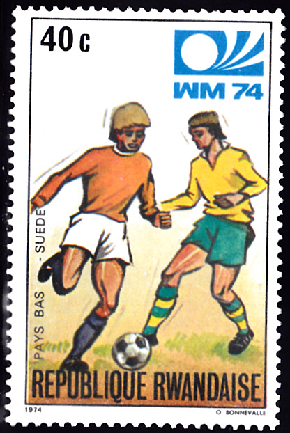 Am 19. Juni 1974 spielten in Dortmund (Westfalenstadion) in der Gruppe III Niederlande – Schweden 0:0. Eine Marke aus Ruanda (MiNr 627 A) belegt dieses Spiel.