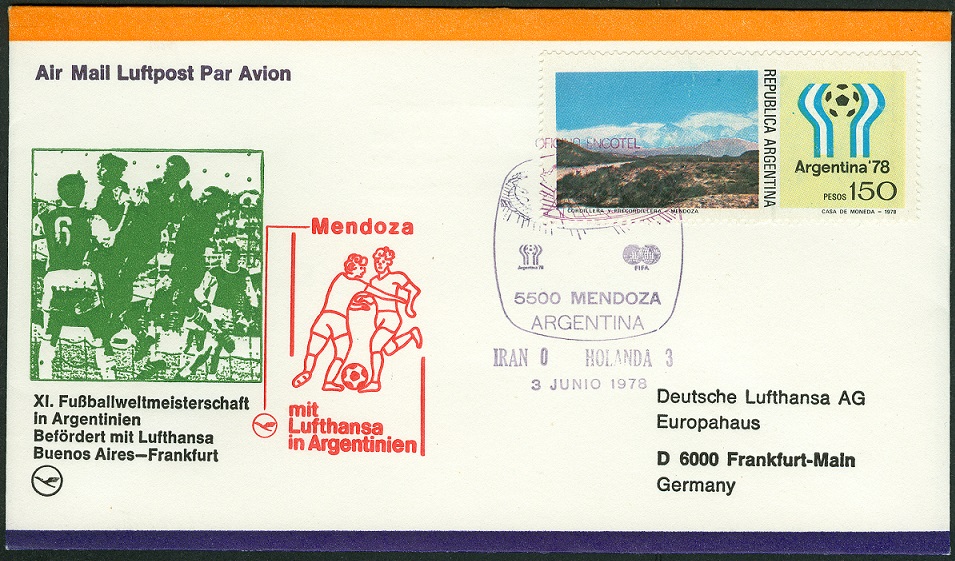 Den 3:0-Sieg der "Holländer" über den Iran verewigte der Sonderstempel auf diesem LH-Beleg.