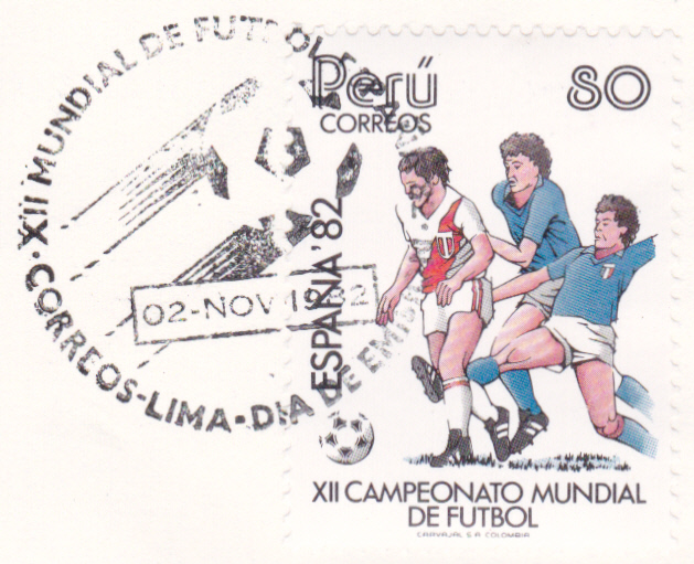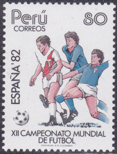 Aus Peru kommt diese Marke (MiNr 1231) zur Fußball-Weltmeisterschaft 1982 in Spanien.