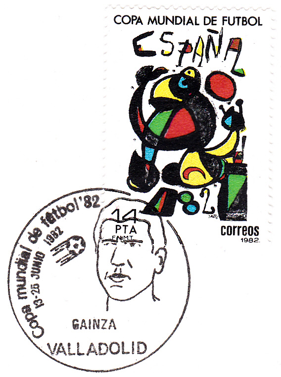 Diese Marke wurde mit einem Sonderstempel zur WM aus Valladolid gestempelt. Im Stempelbild ist ein Portrait des spanischen Fußballspieler Agustín Gaínza zu sehen.