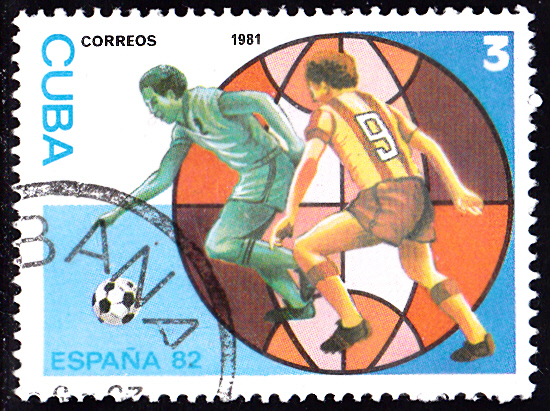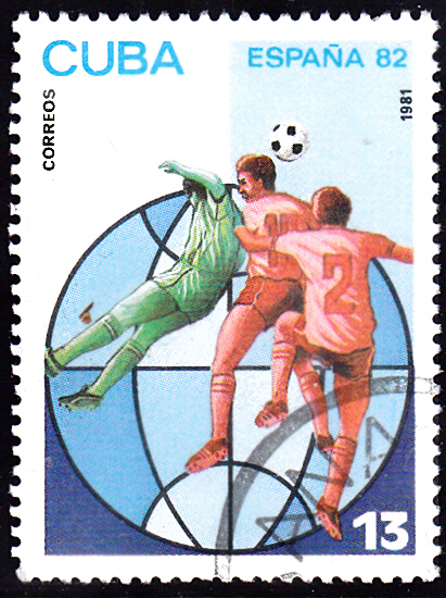 In Kuba ist auch noch eine zweite Serie zur WM 1982 erschienen. Die Marke zu 1C (MiNr 2618) zeigt einen Torwart vor seinem Tor.