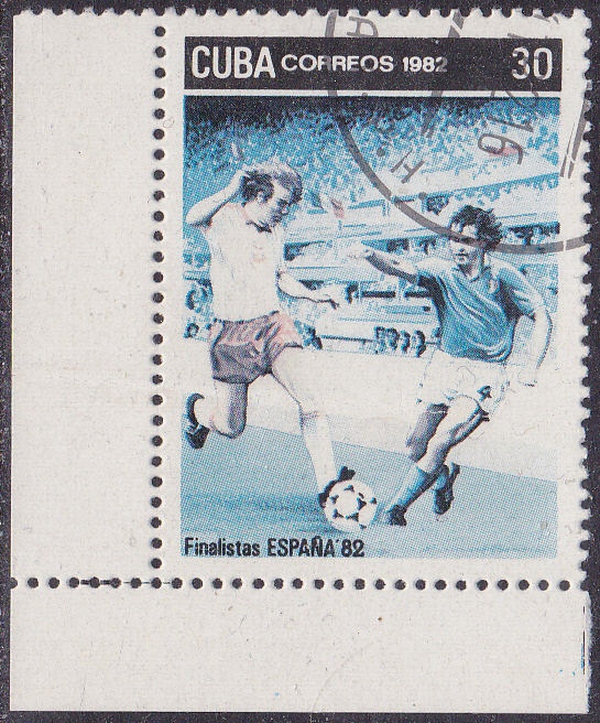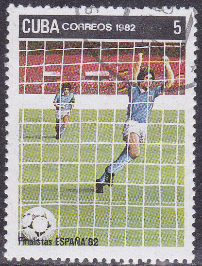 Im Jahre 1982 ist dann in Kuba noch eine dritte Serie zur Fußball WM 1982 in Spanien ausgegeben worden. Diese Marke (MiNr 2685) zeigt einen Stürmer beim Torjubel.