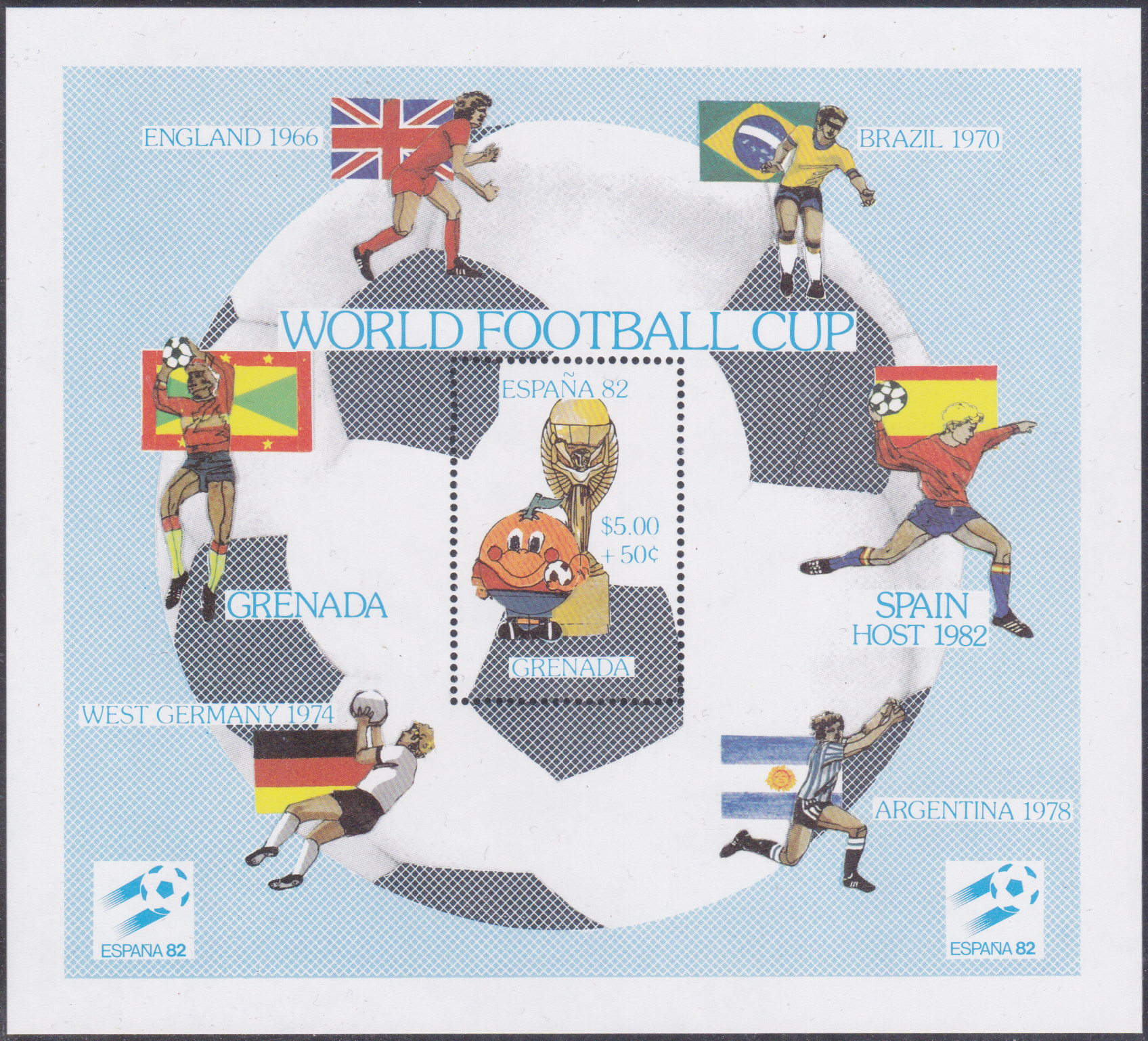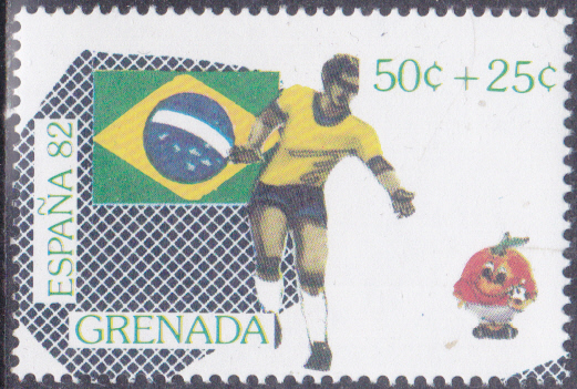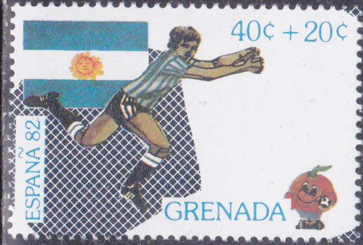 In Grenada ist zur WM 1982 in einer Serie diese Marke (MiNr 1124) mit einem Torwart, der Flagge Deutschlands und einem Teil eines Fußballs erschienen.