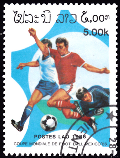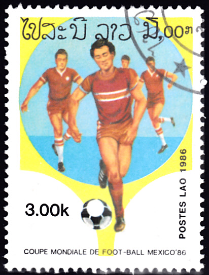 Ergänzend zu einem bereits gezeigten Block aus Laos kann ich heute hier auch die zur Ausgabe gehörenden Marken zeigen. Auf dieser Marke (MiNr 882) umspielt ein Spieler seinen Gegenspieler.