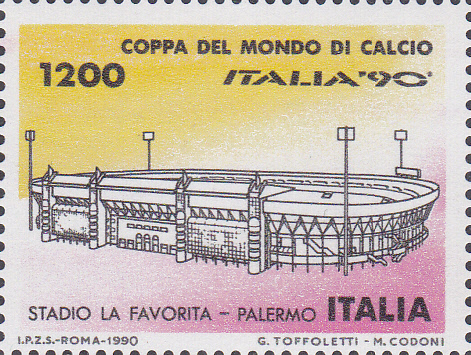 Diese Marke aus Italien (MiNr 2138) bildet das Stadio La Favorita in Palermo ab.