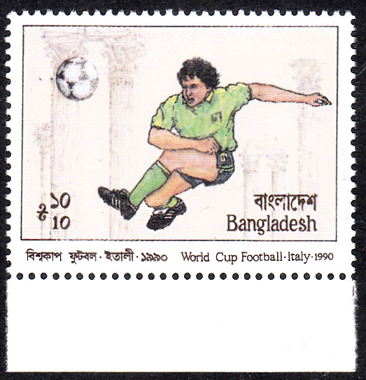 Die zweite Marke aus Bangladesch zu 10 Taka (MiNr 333) zeigt als Motiv einen Feldspieler bei einem Schuss.