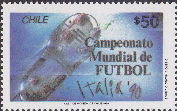 Zur Fußball-Weltmeisterschaft 1990 in Italien ist in Chile in einer Serie diese Marke (MiNr 1341) mit der Abbildung eines Fußballschuhes erschienen.