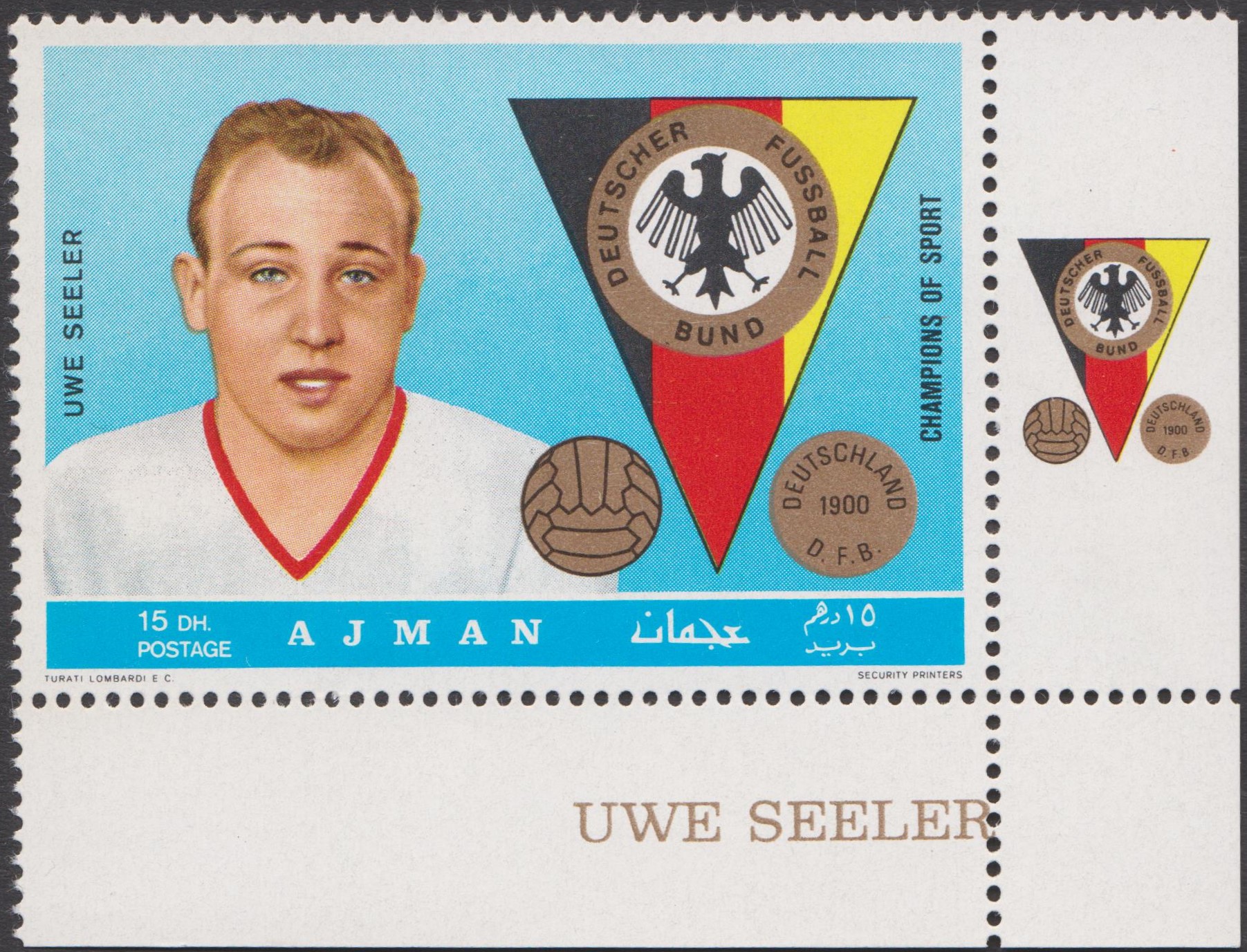 Ajman würdigte Uwe Seeler mit diesem Postwertzeichen, MiNr. 364: