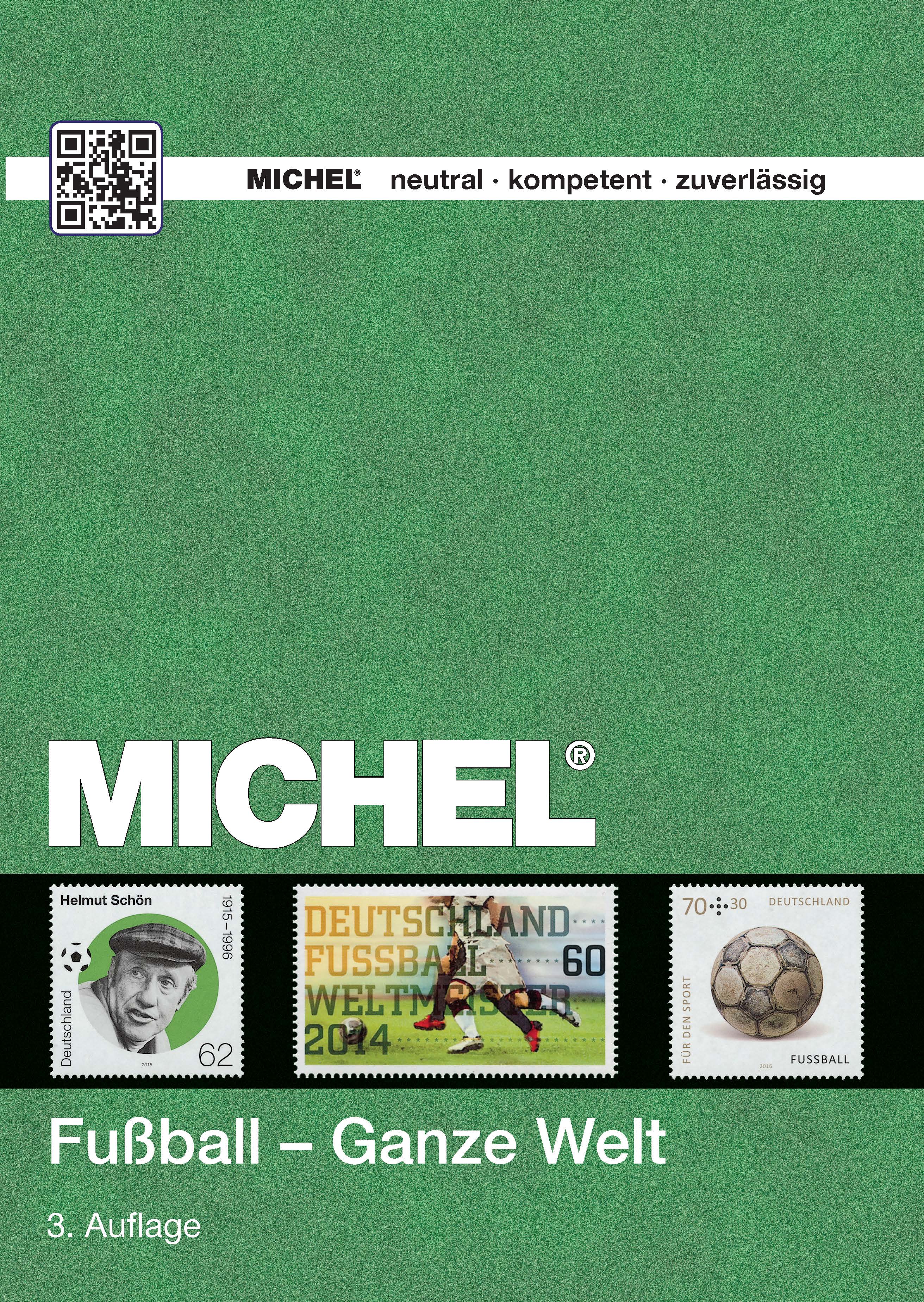 Pünktlich zur Europa-Meisterschaft in Frankreich erscheint am 10. Juni 2016 der neue MICHEL-Motive Fußball – Ganze Welt 2016 in der 3. Auflage in Farbe mit 652 Seiten im Format: 148 x 210 mm. Er kostet in Papierform 68,00 € und in der MICHEL-Online-Bibliothek 34,00 €.Der Katalog enthält Briefmarken mit Fußballthemen aus der ganzen Welt, geordnet nach Ländern und Ausgabedatum.