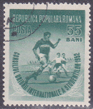 In Rumänien ist zum Kongress des Internationalen Studentenverbandes in Bukarest 1952 diese Marke (MiNr 1406) mit Studenten beim Fußballspiel erschienen.