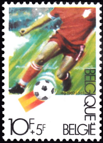 In Belgien ist in einer Serie "Sport" eine Marke (MiNr 1915) erschienen, die auch einen Fußballspieler beim Führen eines Balles zeigt. Die hier gezeigte marke vom Bogenrand trägt das Druckdatum.
