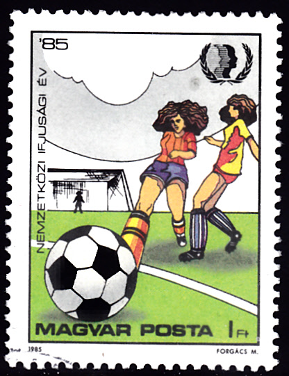 In einer Markenserie zum Internationalen Jahr der Jugend 1985 aus Ungarn werden Sportarten gezeigt. Eine der Marken (MiNr 3751 A) zeigt ein Motiv zum Thema Frauenfußball.