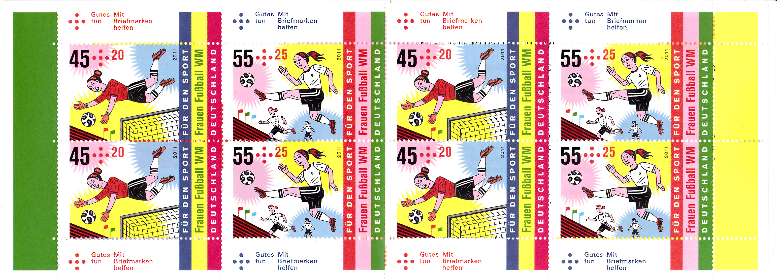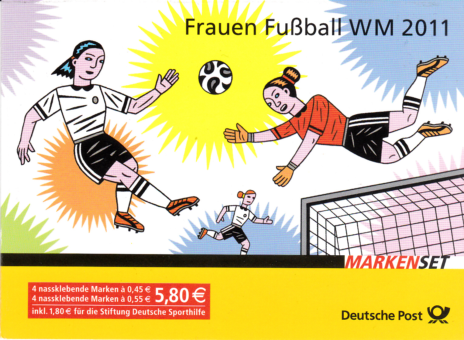 Die beiden Marken der Deutschen Post AG zur Frauen WM 2011 (MiNr 2857 und 2858) sind auch zusammenhängend im Markenheftchen (MiNr MH 84) gedruckt worden.