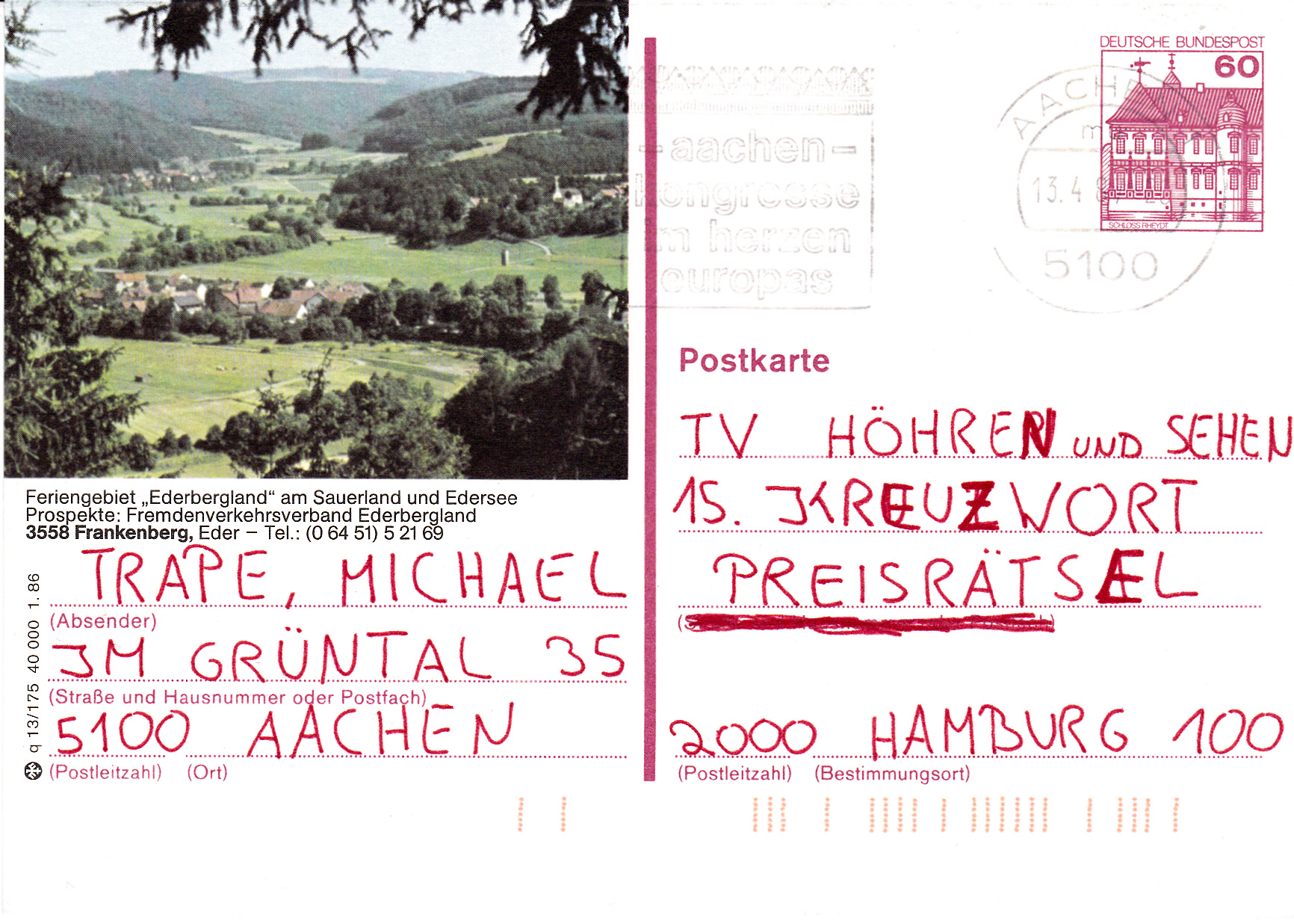 Hier eine bild- und textgleiche Karte aus dem Jahre 1986: