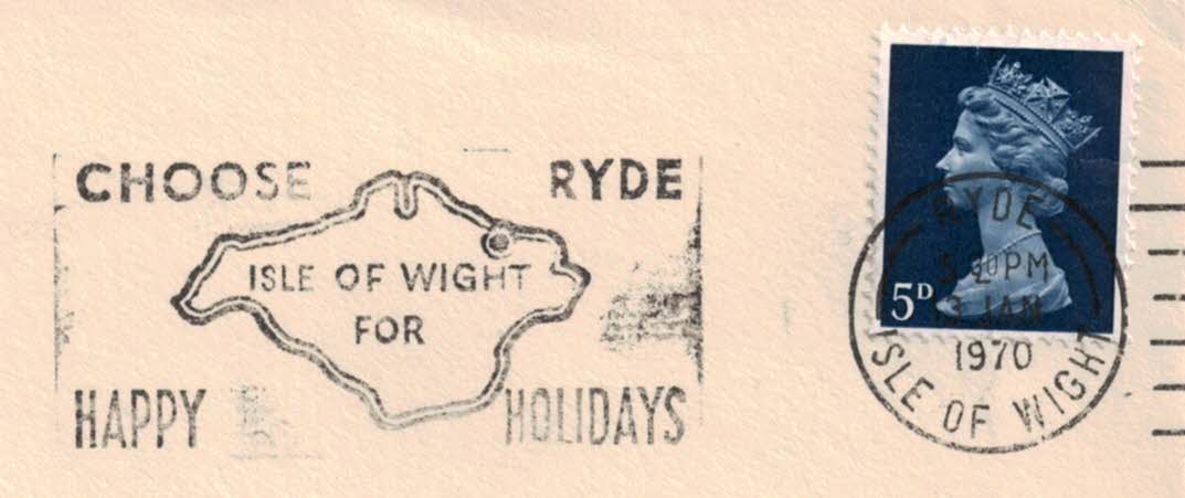 Wähle Ryde auf der Insel Wight für schöne Ferien. So etwa lautet die Übersetzung des Maschinenstempels