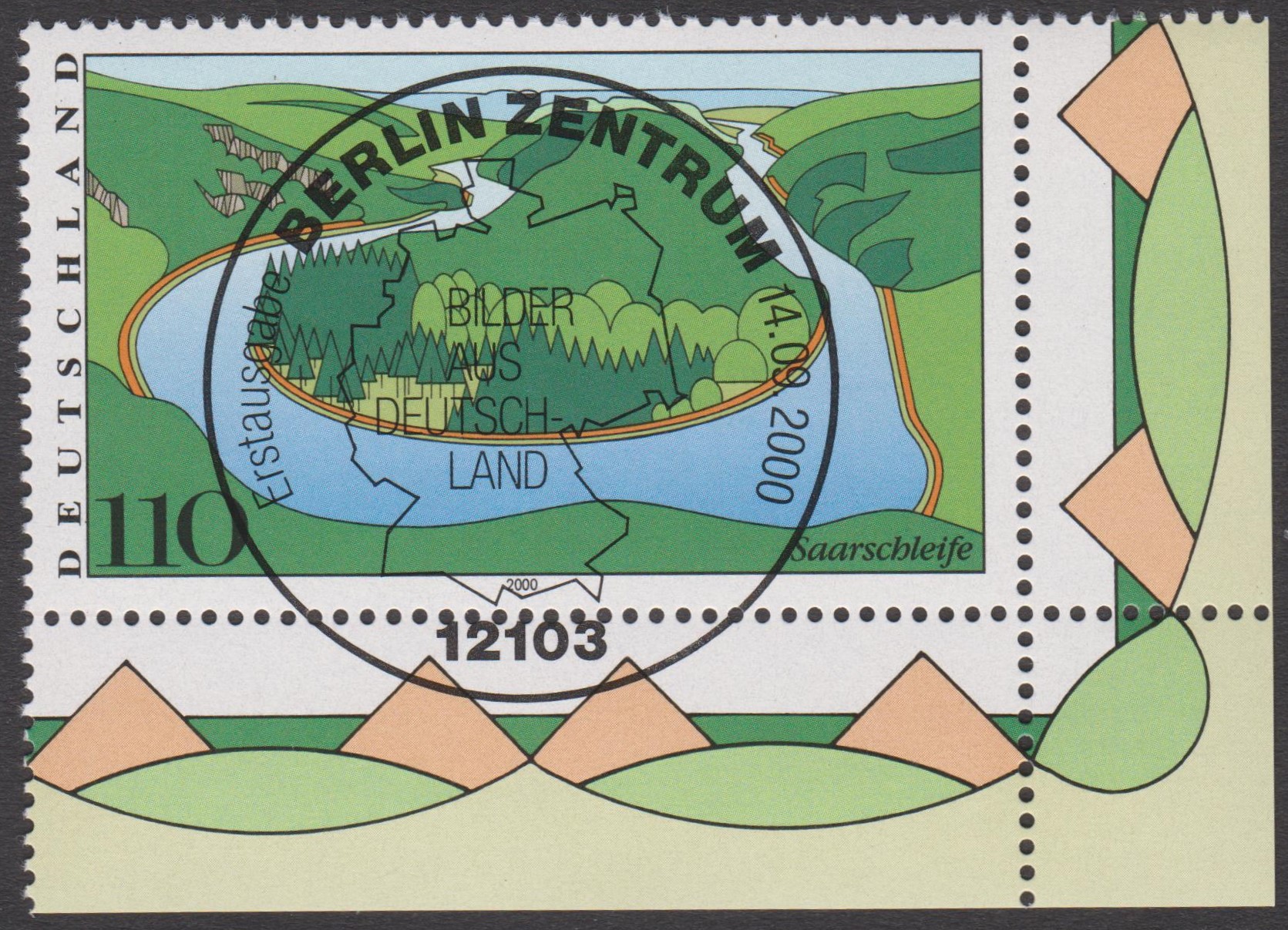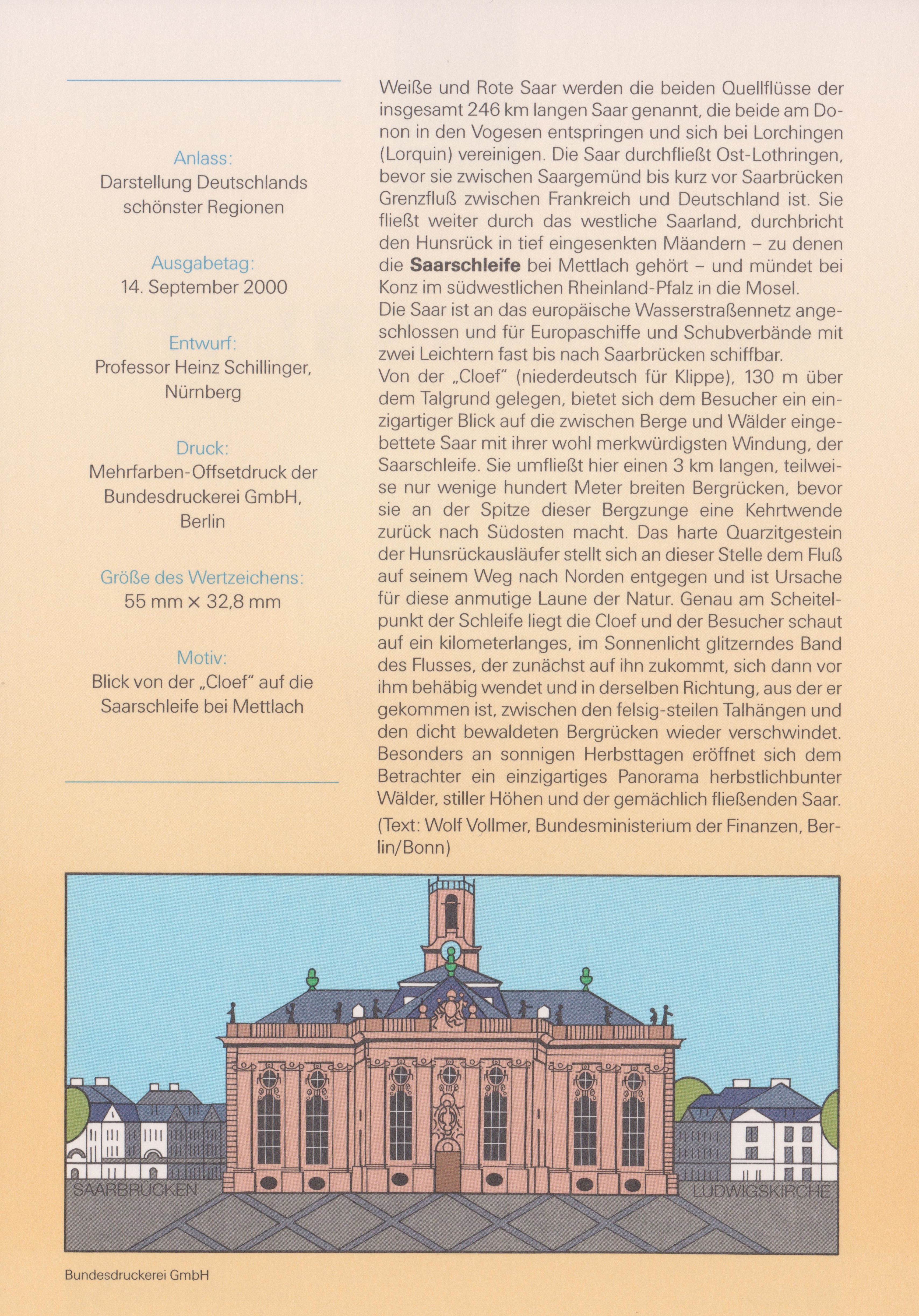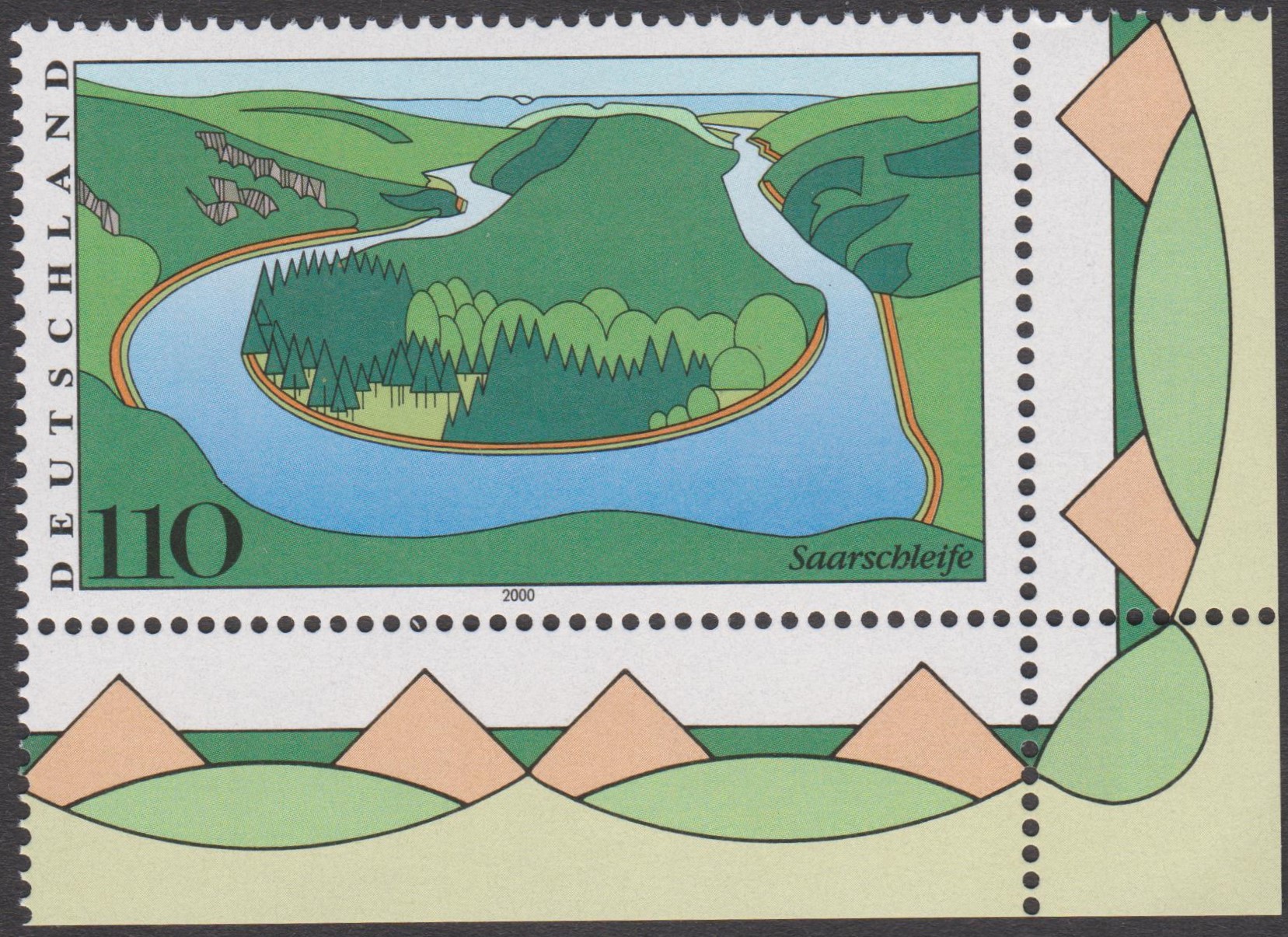 Bund MiNr. 2133 zeigt einen Blick auf die Saarschleife bei Mettlach, hier auf ETB 36/2000: