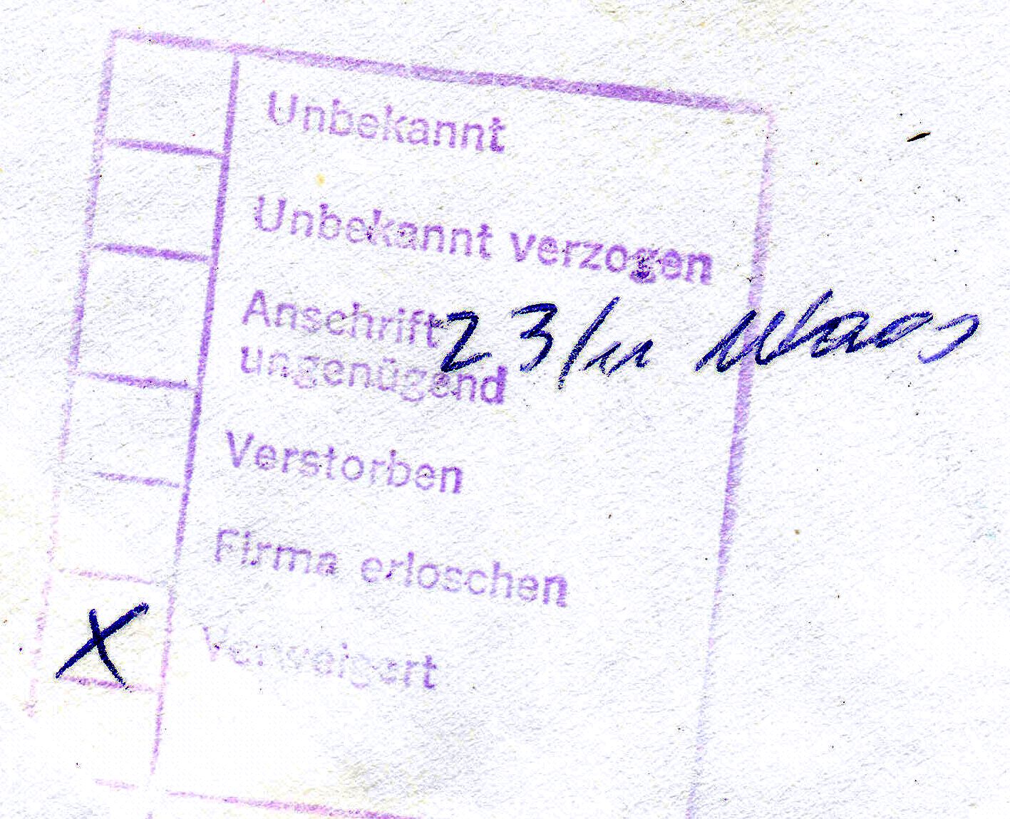 Eine Briefdrucksache kostete 70 Pfennig Porto, womit die 10 Pfennig Fehlporto plus 60 Pfennig Einziehungsgebühr sich zu den ausgewiesenen "70" Pfennig als Nachgebühr addieren!???