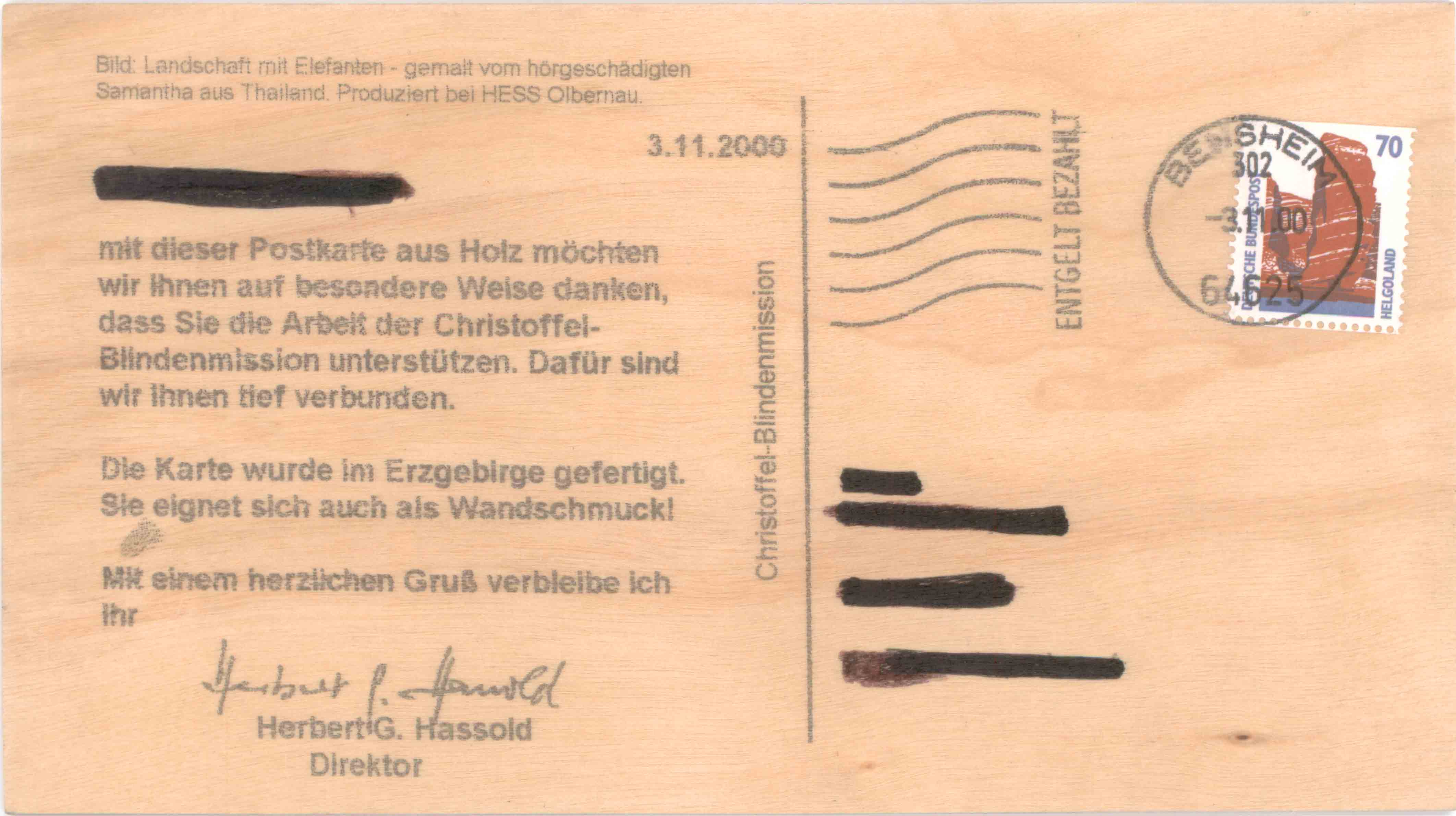eine Postkarte aus Holz, die mir Rüdiger geschenkt hat, gibt mir Rätsel auf:
