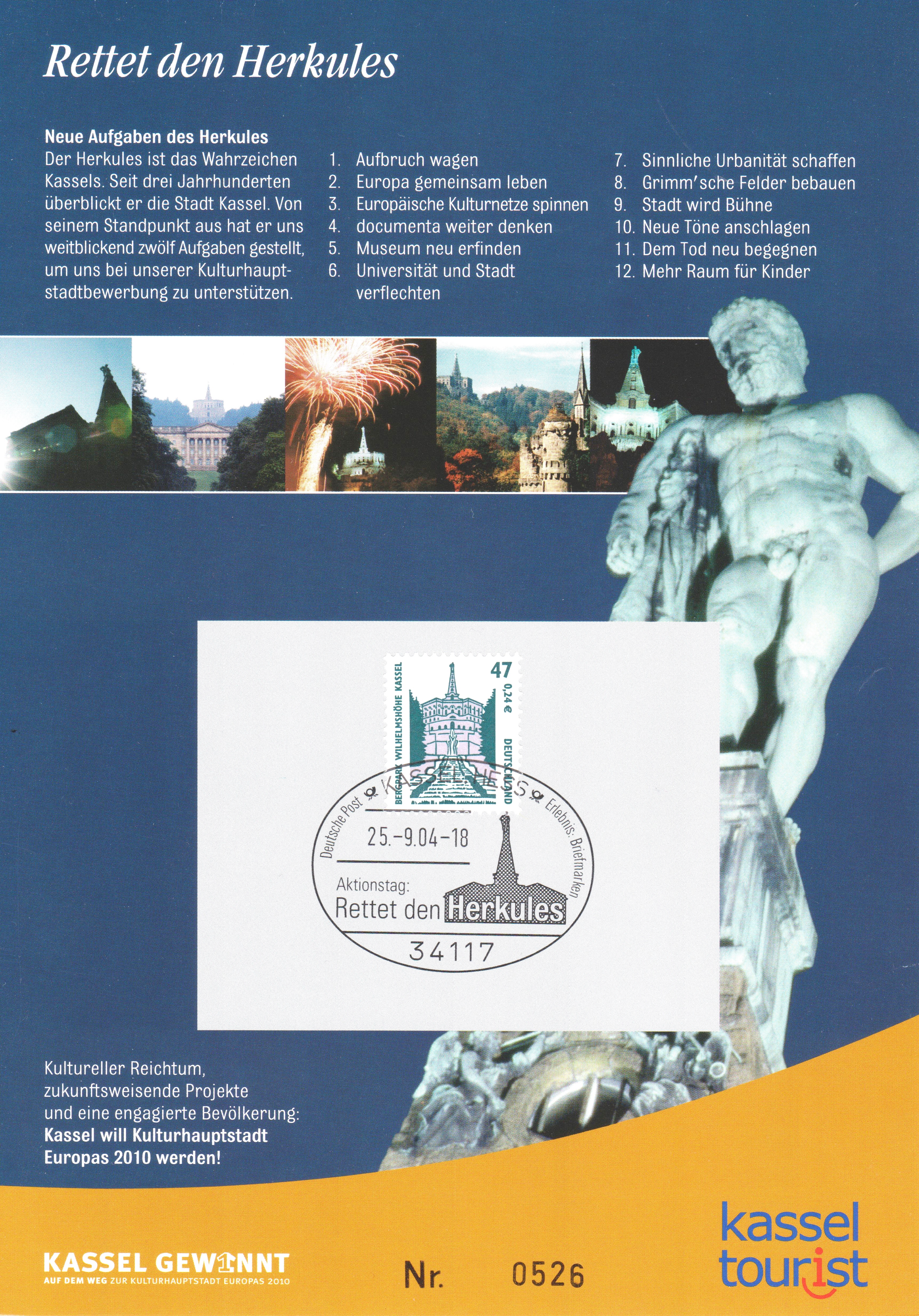 Gedenkblatt mit Sonderstempel "Aktionstag Rettet den Herkules":
