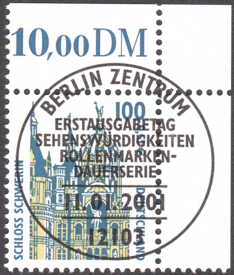 Das in der Ganzsache eingedruckte Postwertzeichen wurde mit dem Ersttagssonderstempel entwertet, die Zusatzfrankatur mit einem Tagesstempel 53111 BONN y 11.-1.01-16.