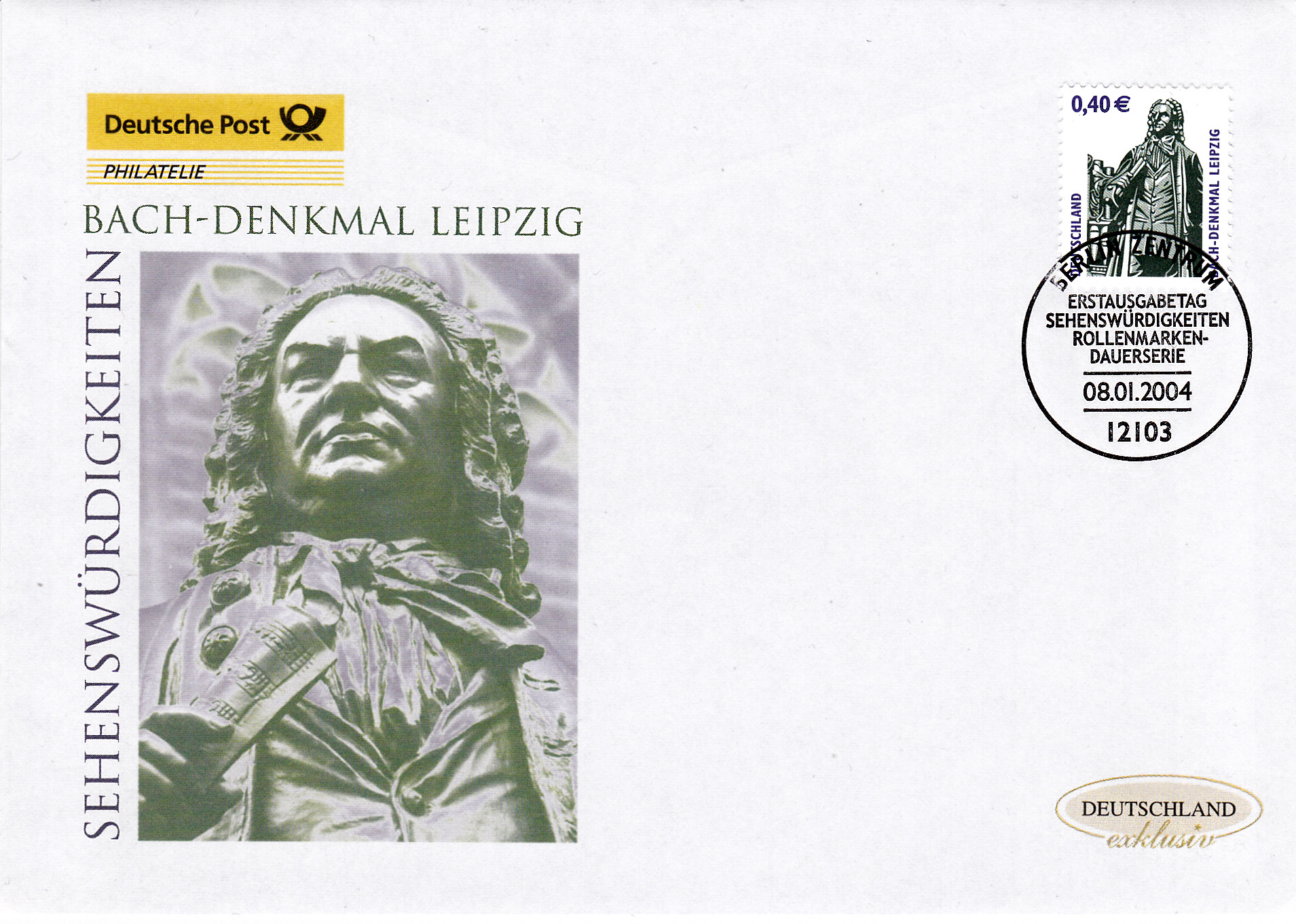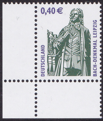 Am 8.1.2004 ist in der Dauerserie "Sehenswürdigkeiten" eine Marke zu 0,40€ erschienen. Sie zeigt das Bach-Denkmal in Leipzig.