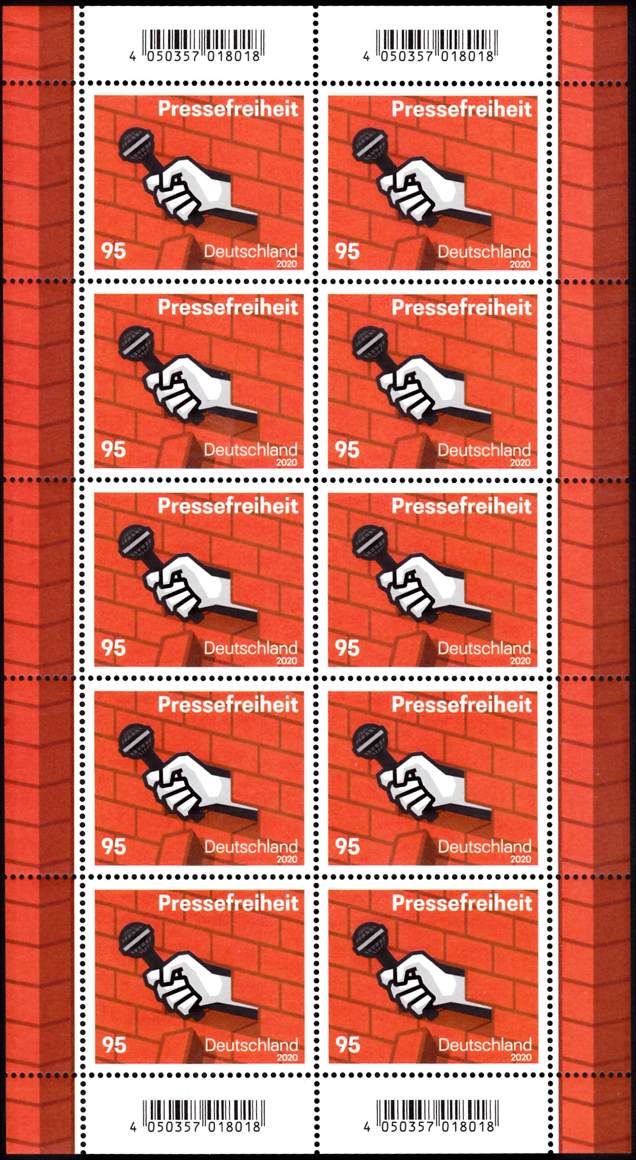 Die Marke ist wie üblich als Zehnerbogen gedruckt worden.