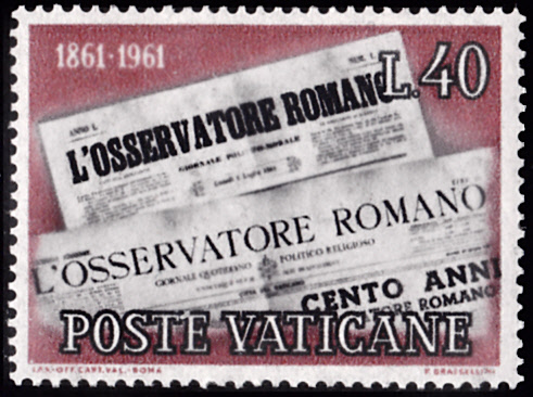 Im Vatikan ist zum Jubiläum "100 Jahre Zeitung 'L’Osservatore Romano'" eine Marke (MiNr 375) mit den Titelseiten der Ausgaben von 1861 und 1961 erschienen.