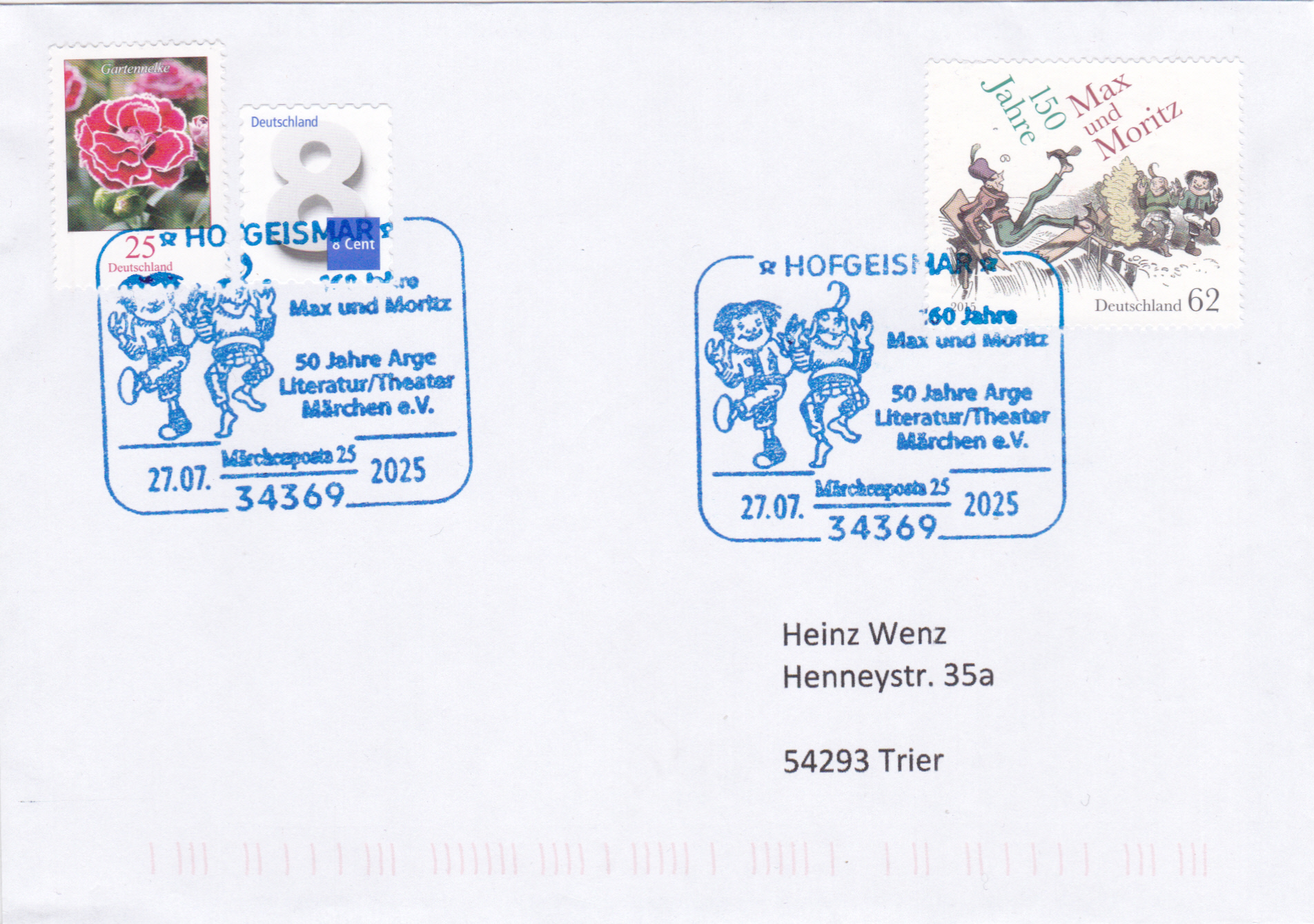 Dieser FRANKIT-Frankierstempel der Deutschen Post vom 26.11.2004 zeigt im Werbeeinsatz den Text "Landkreis Schaumburg - Heimat von Wilhelm Busch" und ein Abbildung von "Max und Moritz".