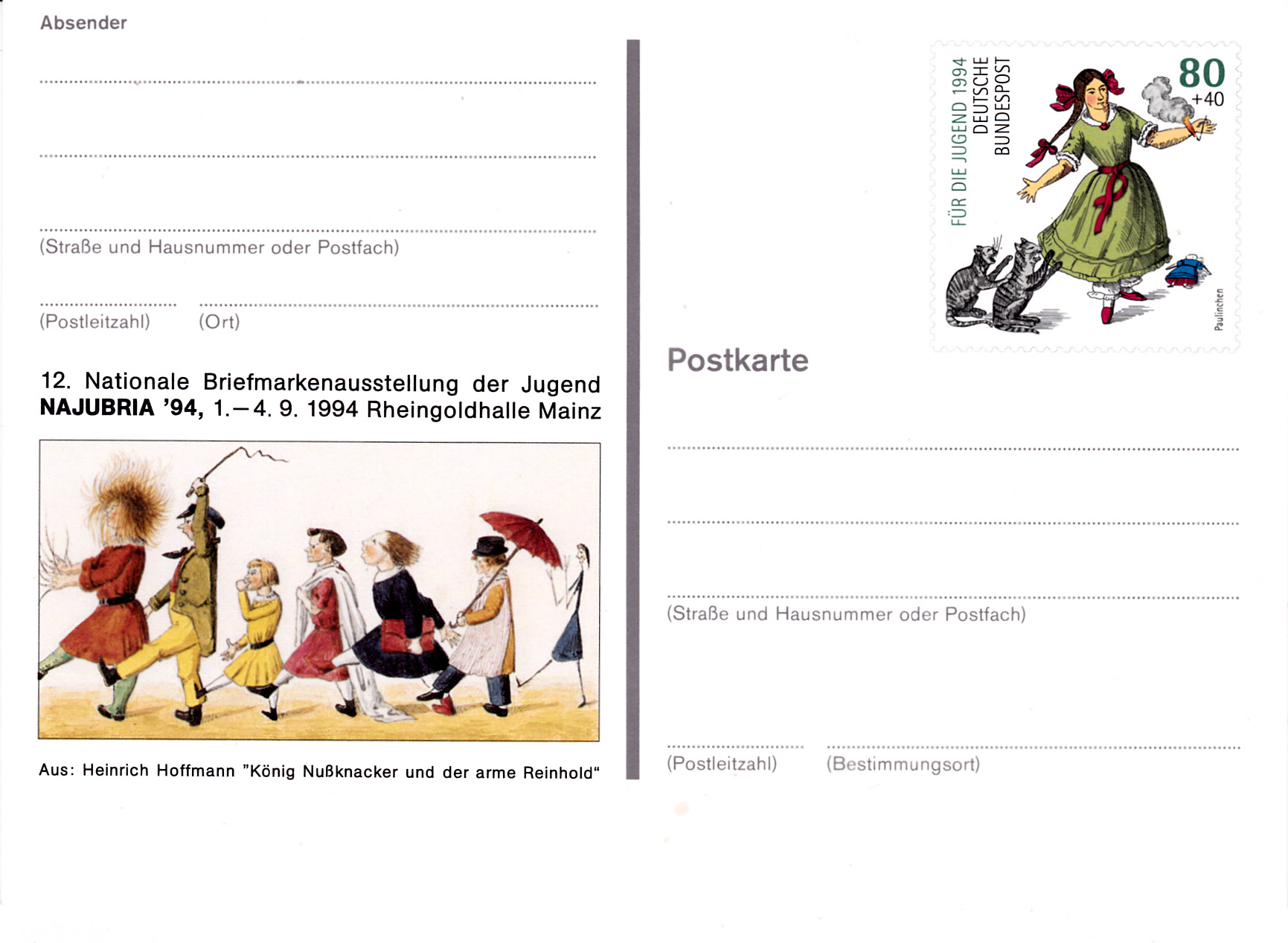 Der Sonderstempel aus Grossrosseln (Ortsteil St. Nikolaus) zur Briefmarkenausstellung am Nikolaustag 1994 zeigt die Illustration zu den Versen: