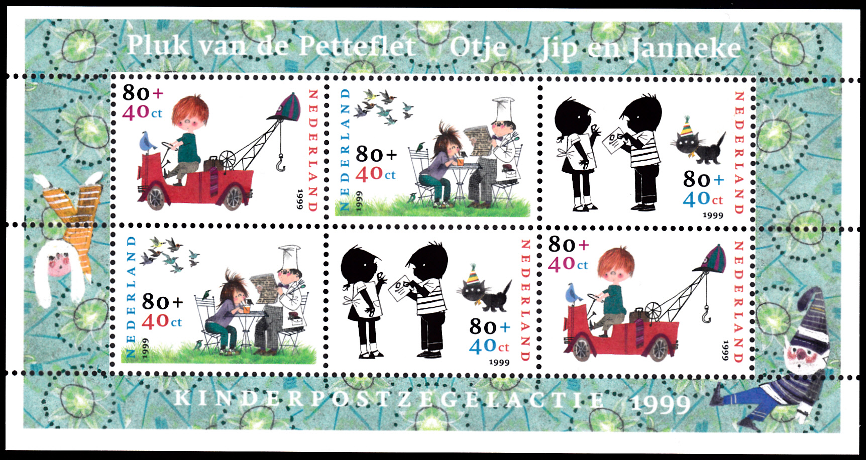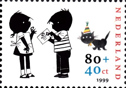 Eine Marke (MiNr 1752) der Niederlande aus der Serie "Voor het Kind" 1999 zeigt eine Illustration zu "Heiner und Hanni".