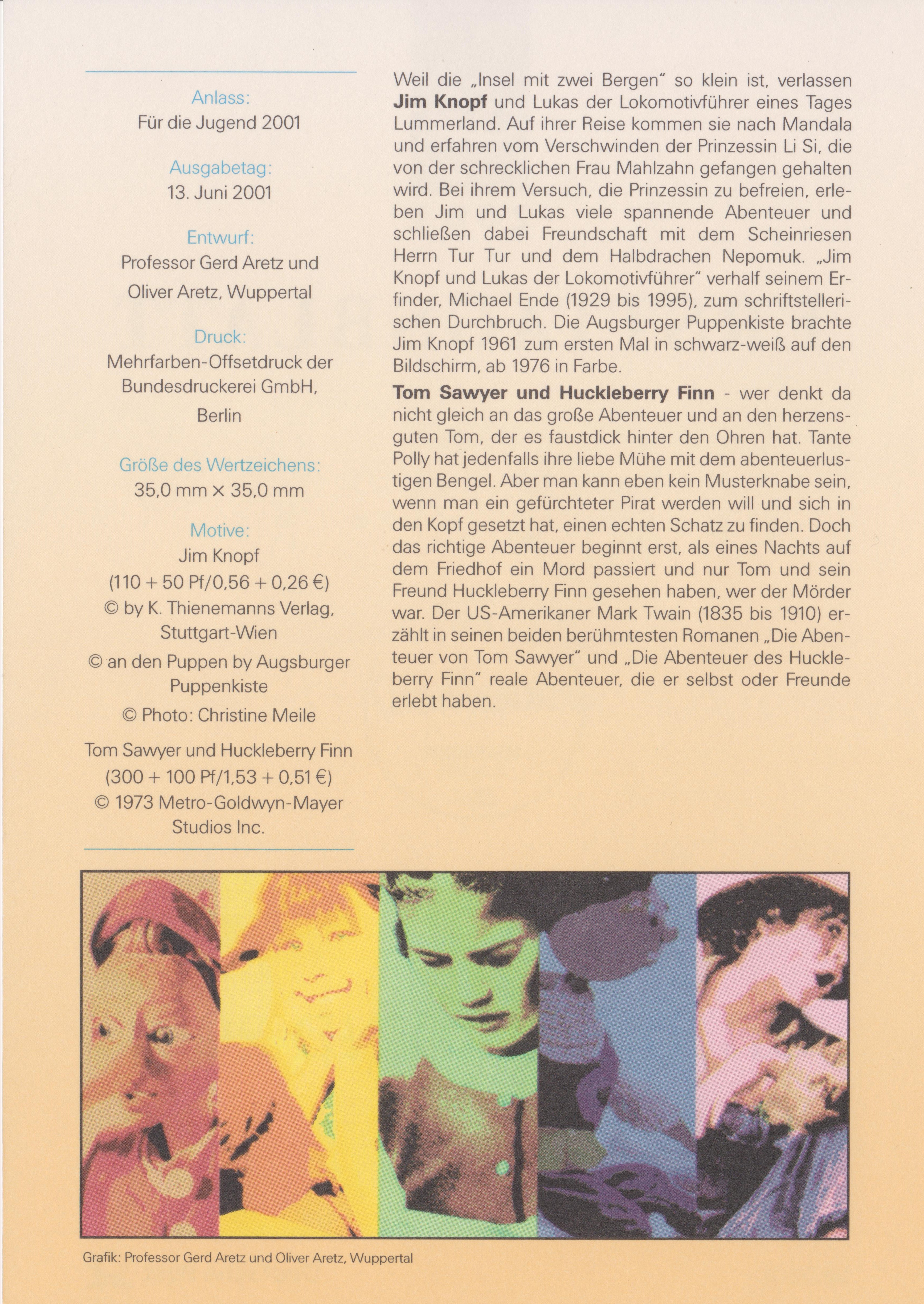 In der Serie "Für die Jugend" 2001 mit Figuren aus Kinder- und Jugendbüchern ist auch eine Marke (MiNr 2193) mit einer Darstellung zum Buch "Jim Knopf und Lukas der Lokomotivführer" erschienen.