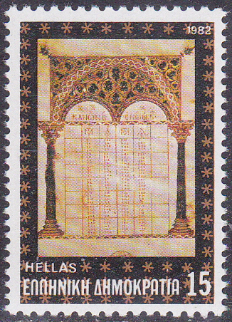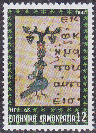 Aus einer Markenserie aus Griechenland kommt diese Marke (MiNr 1489) mit dem Titel eines Evangeliars (Evangelienbuch).