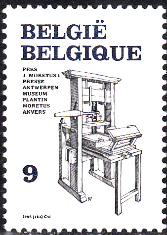 Auf dieser Marke aus Belgien (MiNr 2361) wird eine Hölzerne Buchdruckhandpresse (um 1600) aus dem Plantin-Moretus-Museum in Antwerpen abgebildet. Das Museum geht auf die Druckerei des Christoph Plantin aus dem 16. Jahrhundert zurück. Sie ist die einzige erhaltene Buchdruckerei aus der Zeit der Renaissance und des Barock und wurde 2005 als erstes Museum in die Liste des Weltkulturerbes der UNESCO aufgenommen.