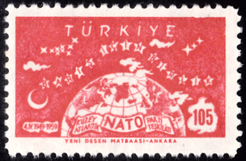 In der Türkei sind 1959 zwei bildgleiche Marken Marken zum Jubiläum "10 Jahre Nato" erschienen. Die beiden Marken zeigen eine Welthalbkugel mit Sternen.
