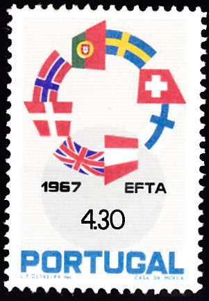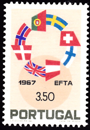 Zur Aufhebung der Zollschranken zwischen den EFTA-Ländern ist in Portugal eine Markenausgabe erschienen. Auf einer Marke zu 1,00 Escudo (MiNr 1043) wird ein Ring aus den Flaggen der EFTA-Länder gezeigt.