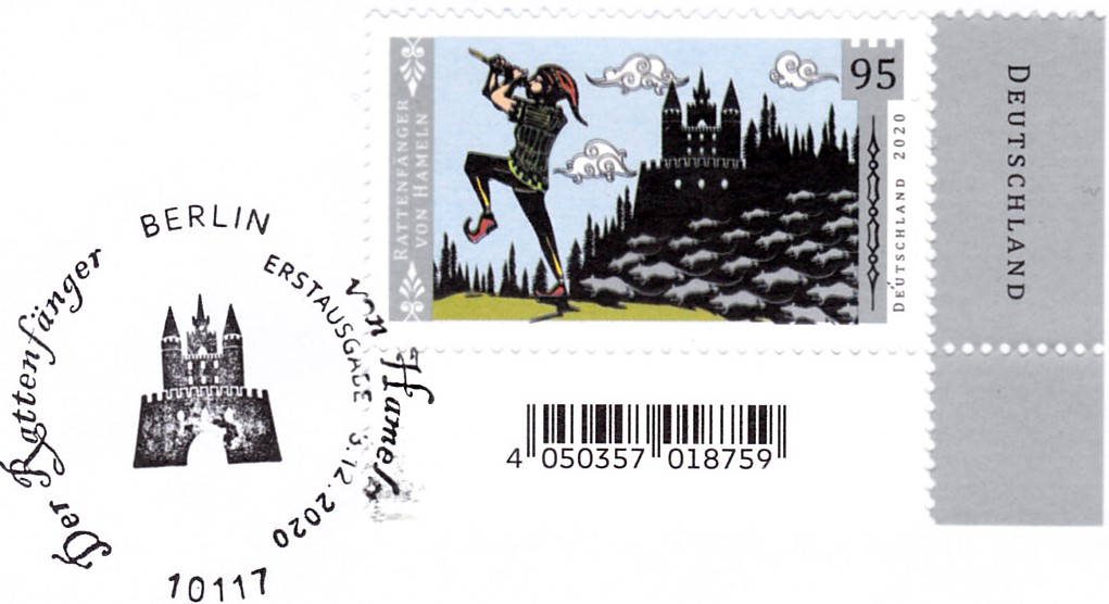 Bei der Deutschen Bundespost erschien 1978 eine Sondermarke (MiNr 972) mit dem Rattenfänger und den ihm folgenden Kinder.