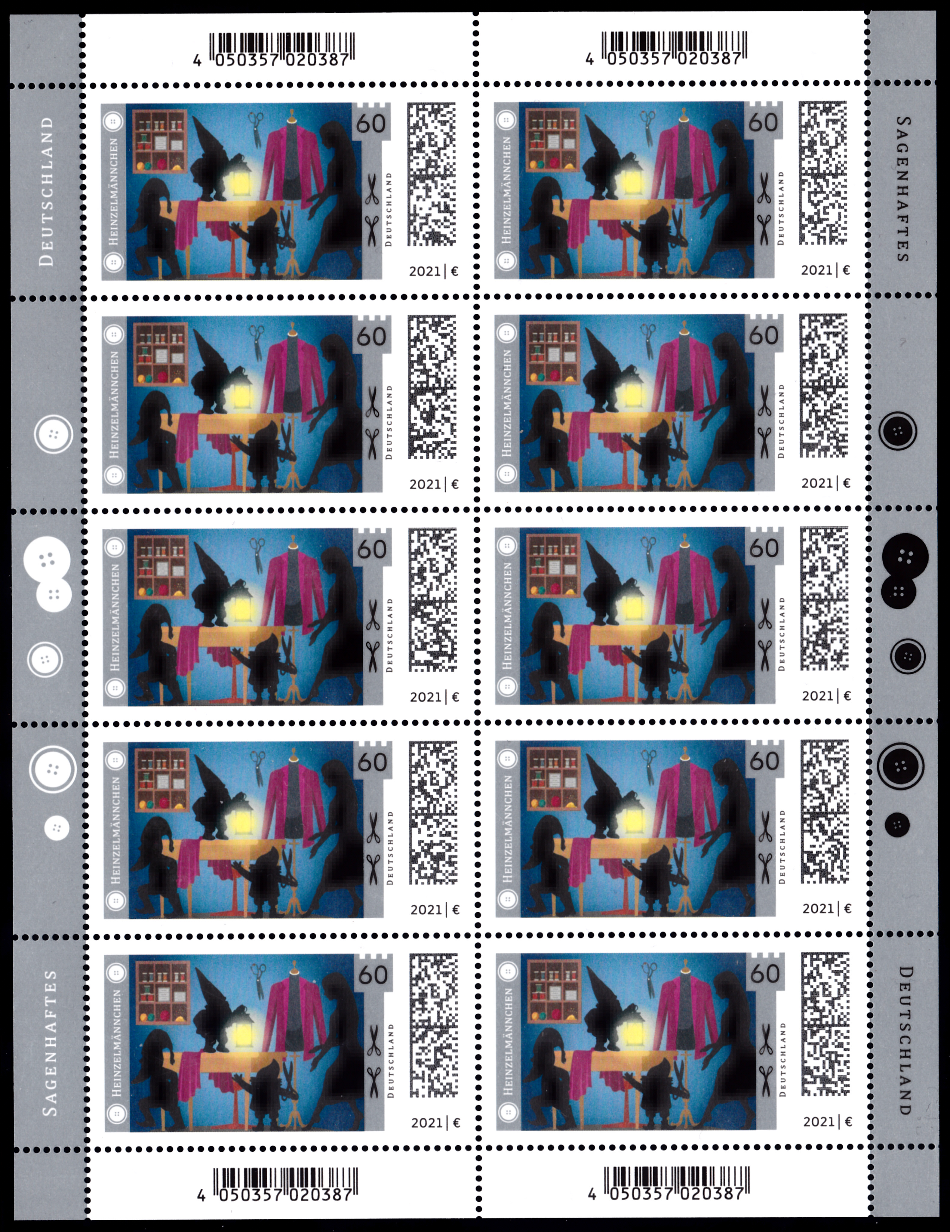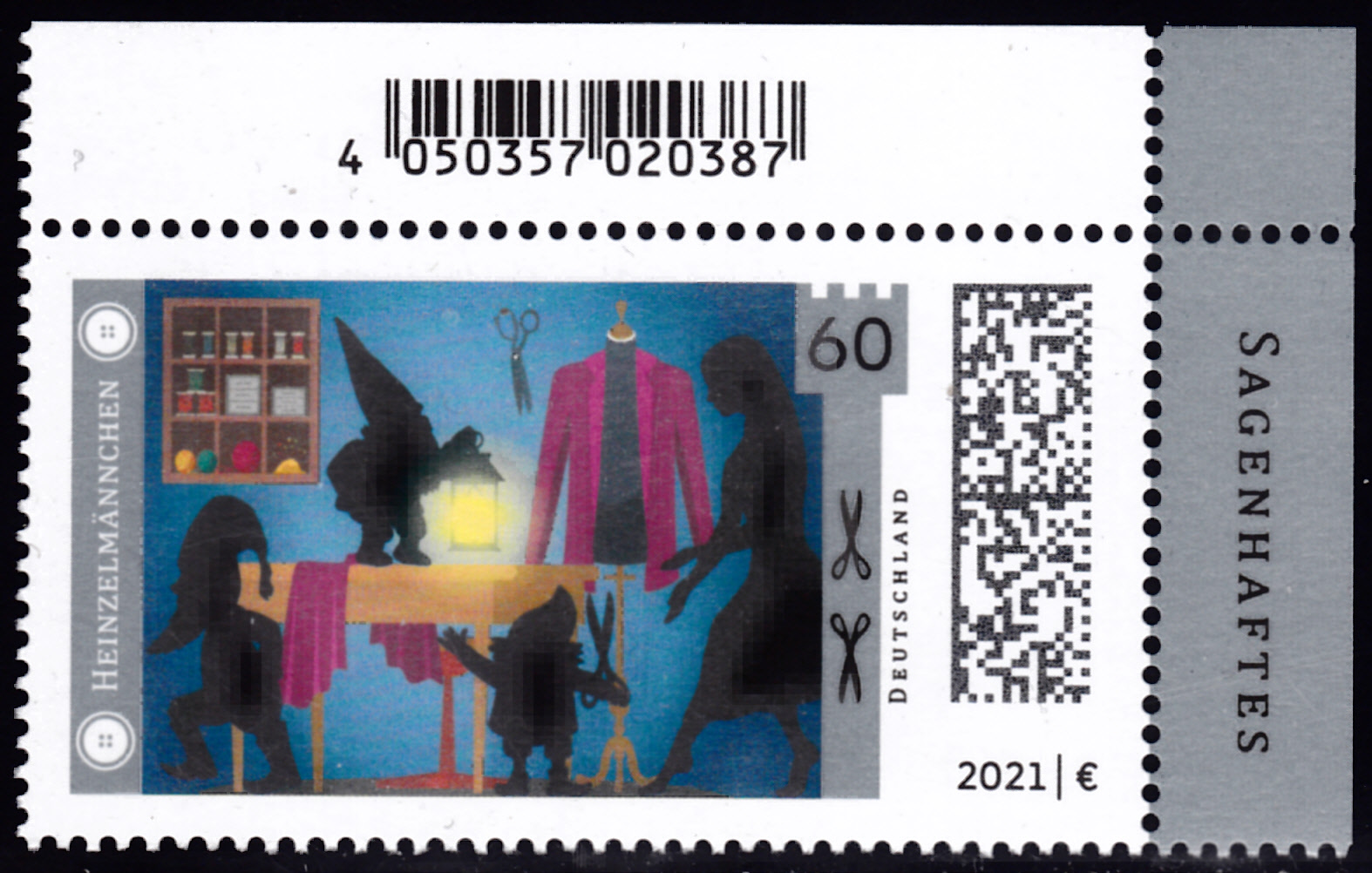 In der Serie "Sagenhaftes Deutschland" ist eine Marke (MiNr 3631) mit der Darstellung "Schneidersfrau überrascht die Heinzelmännchen bei der Arbeit" erschienen.