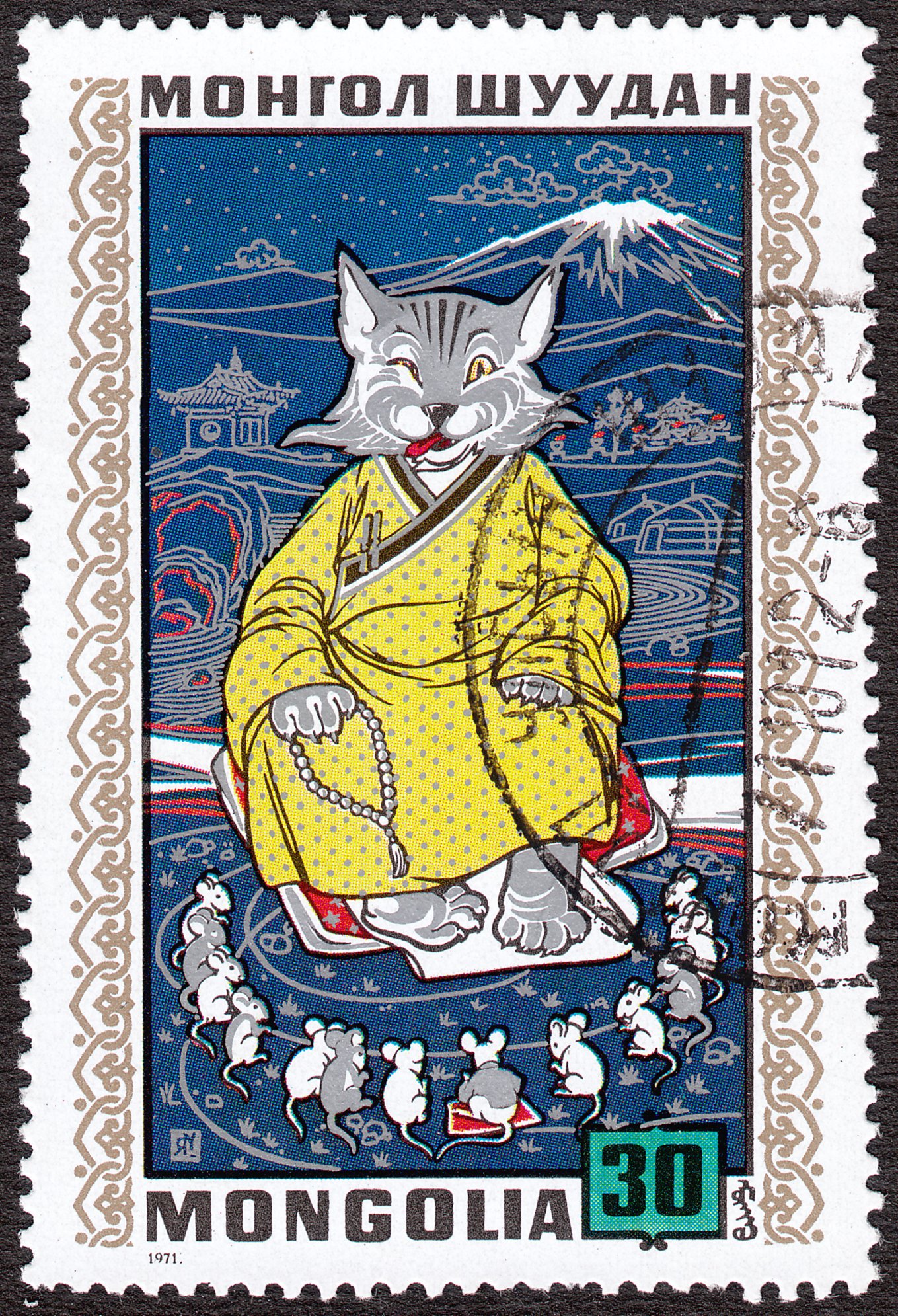 sie misstrauisch. Diese Szene wurde auf diesem Postwertzeichen aus der Mongolei dargestellt: