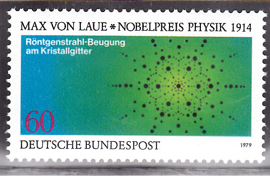 Diese Sondermarke aus der DDR erschien zu Ehren von Max von Laue und zeigt das Laue-Diagramm von Zinkblende: