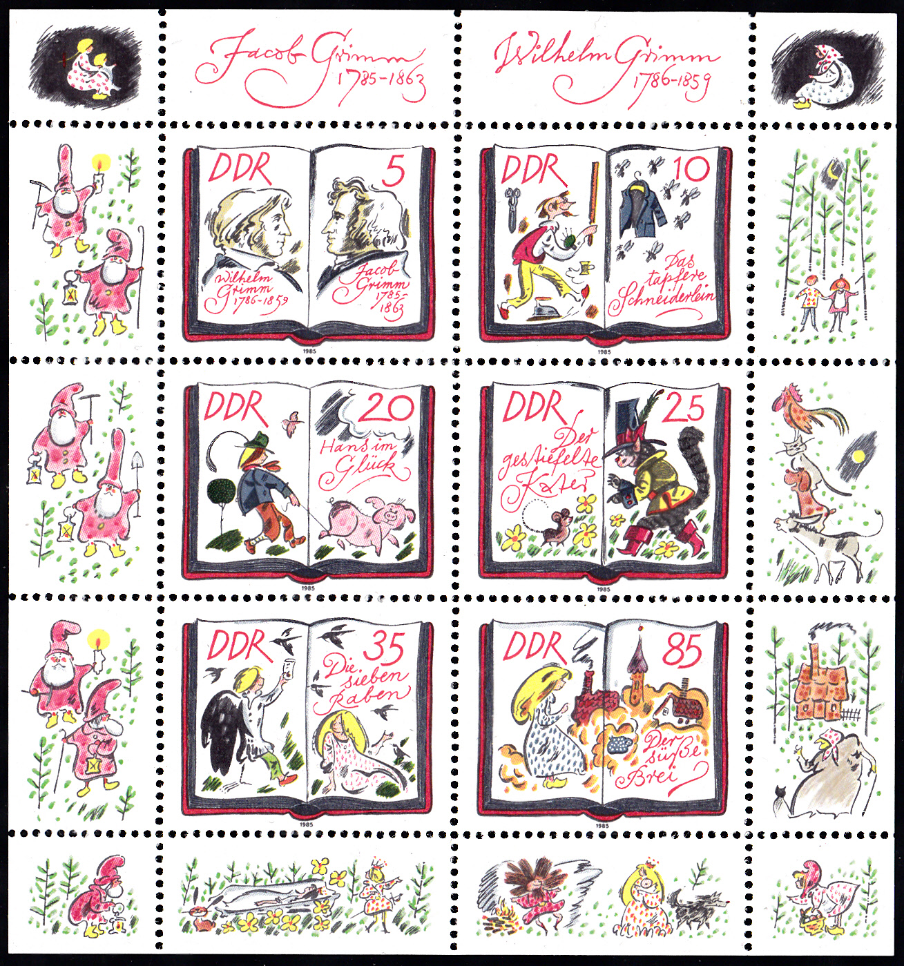 Zum 200. Geburtstag der Brüder Grimm ist in einem Kleinbogen auch eine Marke (MiNr 2988) mit einer Darstellung zu dem Märchen "Der süße Brei" erschienen.