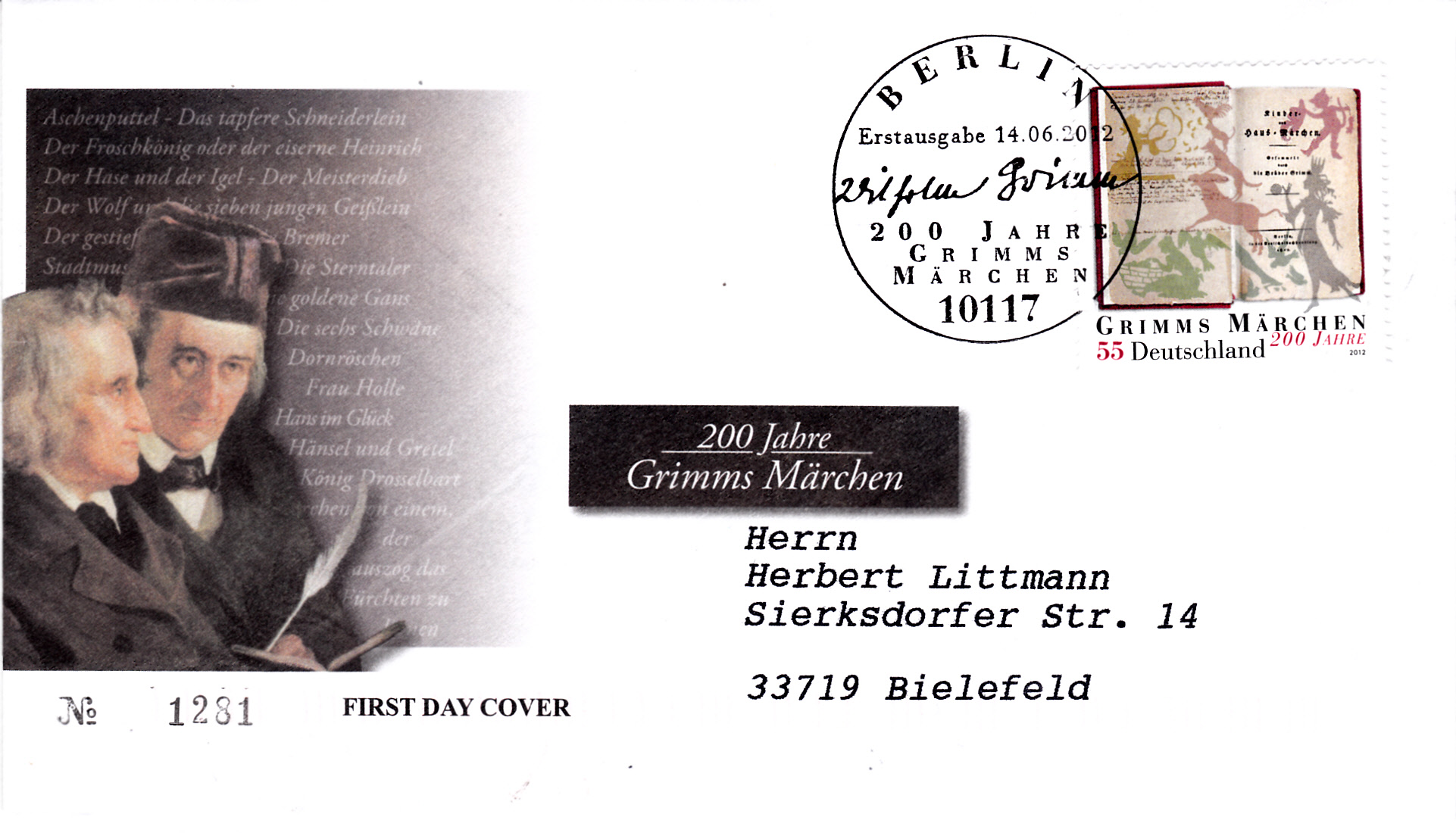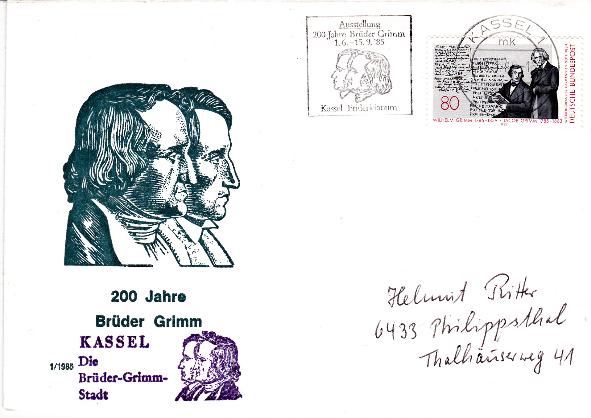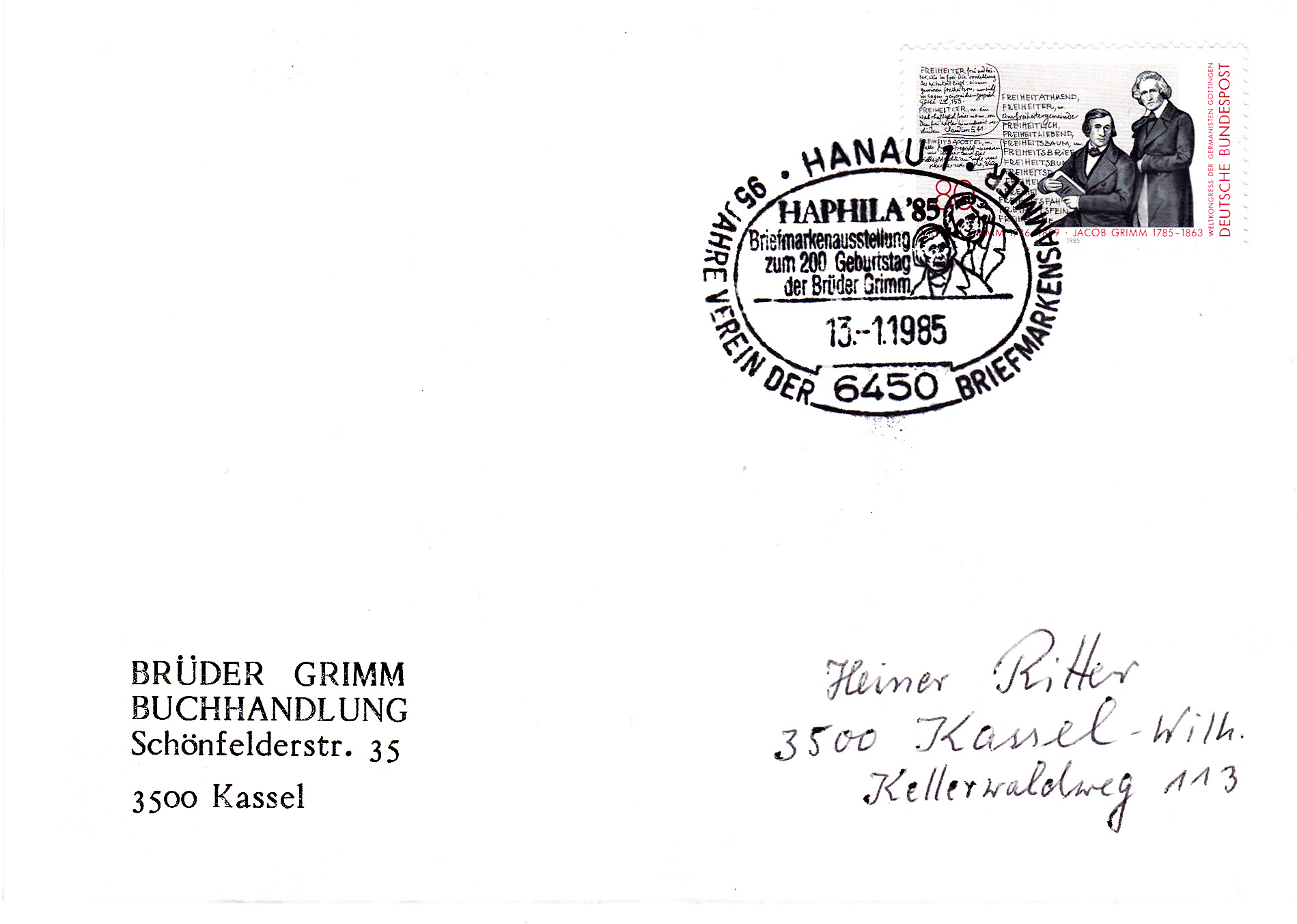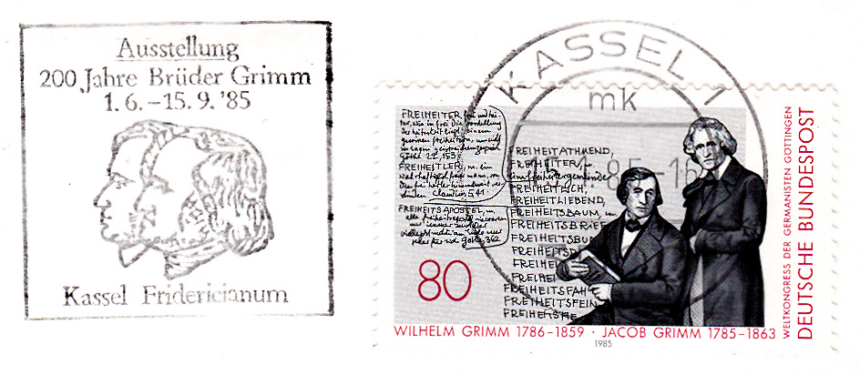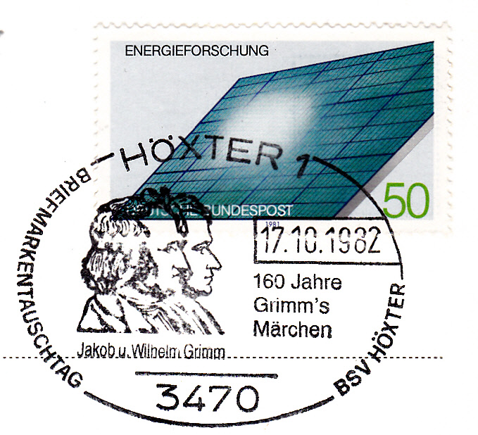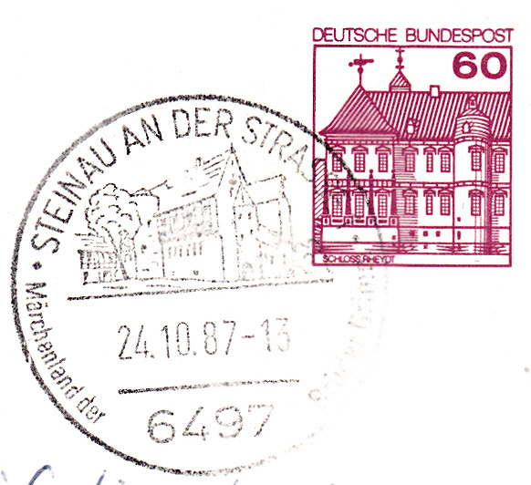 Handwerbestempel aus 6497 Steinau an der Strasse mit dem Zusatztext "Märchenland der Brüder Grimm" und Abbildung des Brüder Grimm-Hauses ins Steinach.