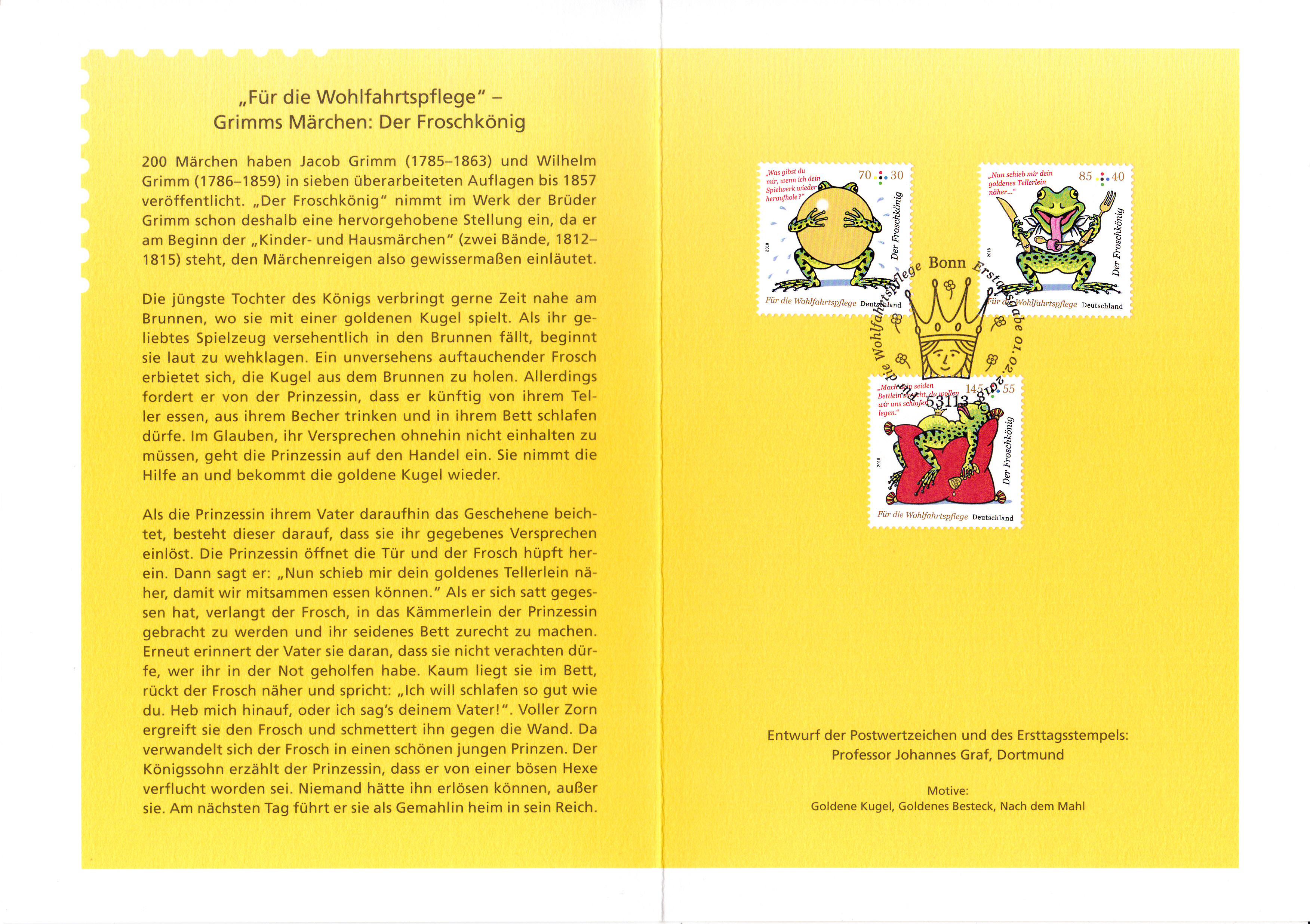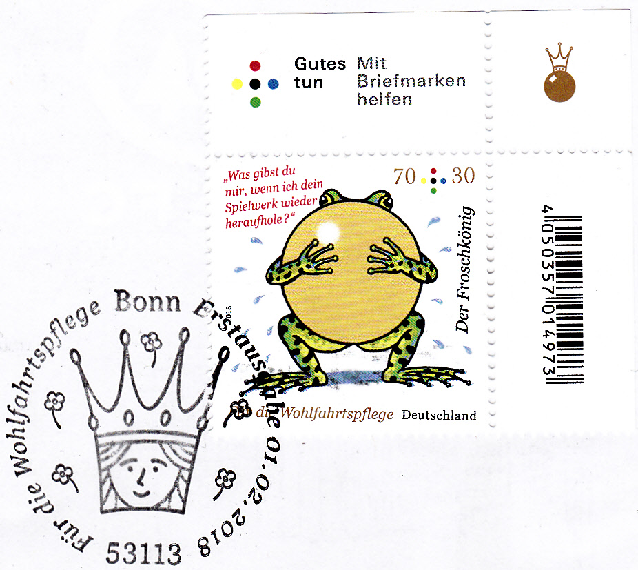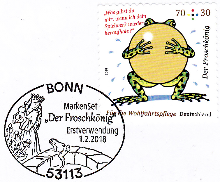 Am Ausgabetag der Markenserie wurde in Hamburg bei einem Märchenaktionstag ein Sonderstempel eingesetzt. Im Stempelbild wird der Brunnen mit dem Froschkönig und der Goldenen Kugel gezeigt.