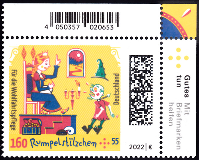 Auf der Marke zu 160+55 Cent (MiNr 3666) wird die Abbildung "Müllerstochter kennt Rumpelstilzchens Namen" gezeigt.