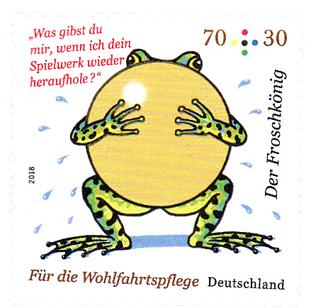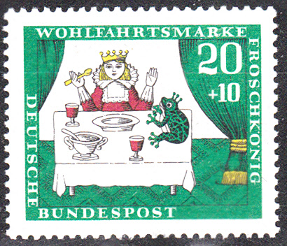 Einer Prinzessin fällt ihre goldene Kugel beim Spiel in den Brunnen, und ein Frosch bietet an, ihr zu helfen. Sie muss ihm dafür versprechen, seine Freundin zu werden und Teller und Bett mit ihm zu teilen.