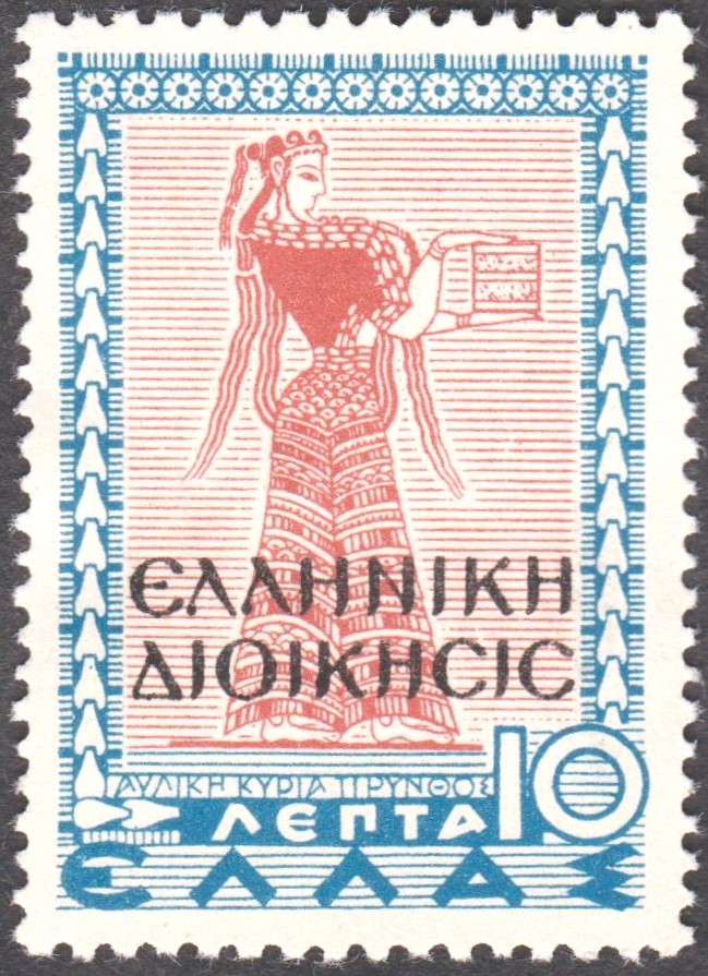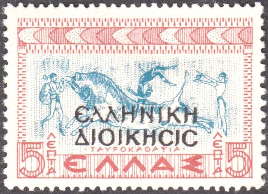 Laut den Informationen im MICHEL-Katalog erschien diese Marke am 10.12.1940, indem die griechische Zwangszuschlagsmarke MiNr. Z 62 mit einem Aufdruck in griechischen Buchstaben "Elliniki Dioikisis" versehen wurde.